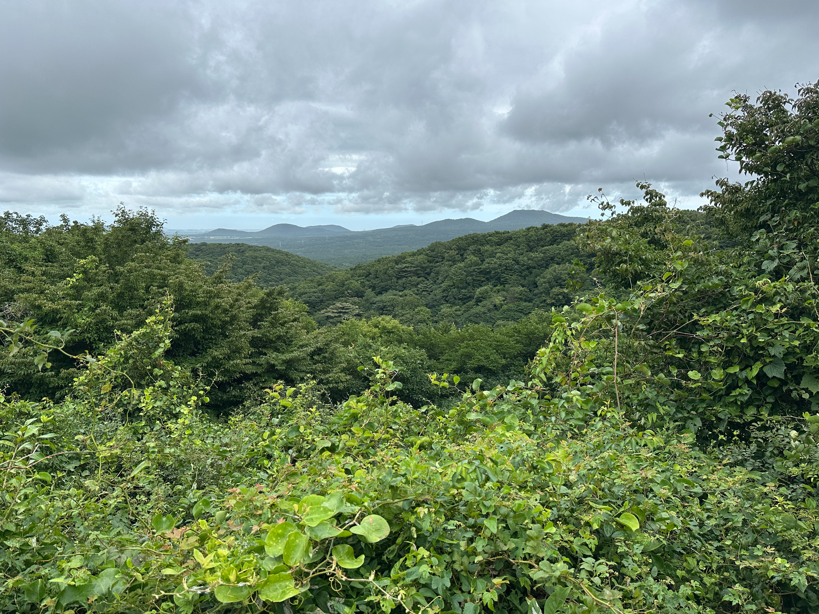 전망대에 바라 본 정경, 한라산은 구름에 가렸다.