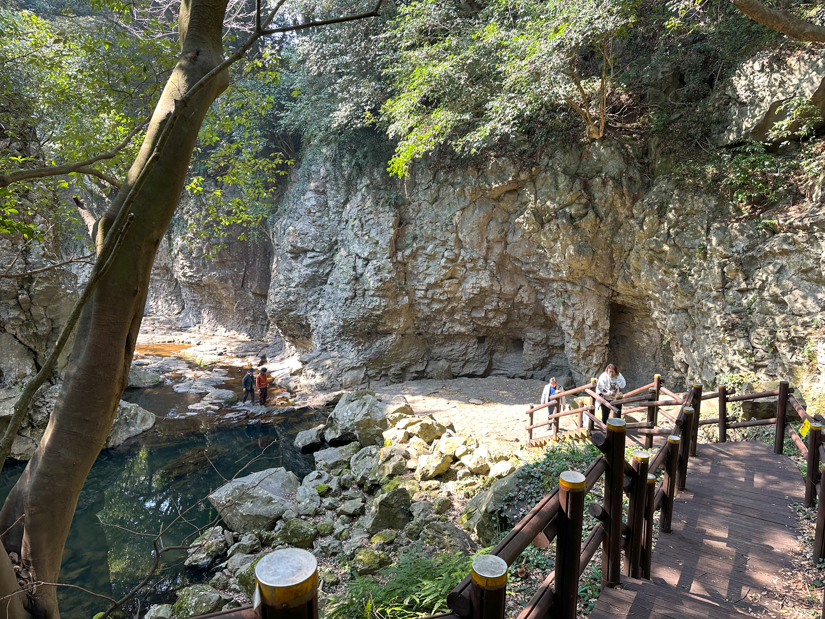 이 곳은 병풍처럼 둘러펴진 기암절벽과 평평한 암반 바닥에서 유유히 흐르는 맑은 물이 운치를 자아내는데