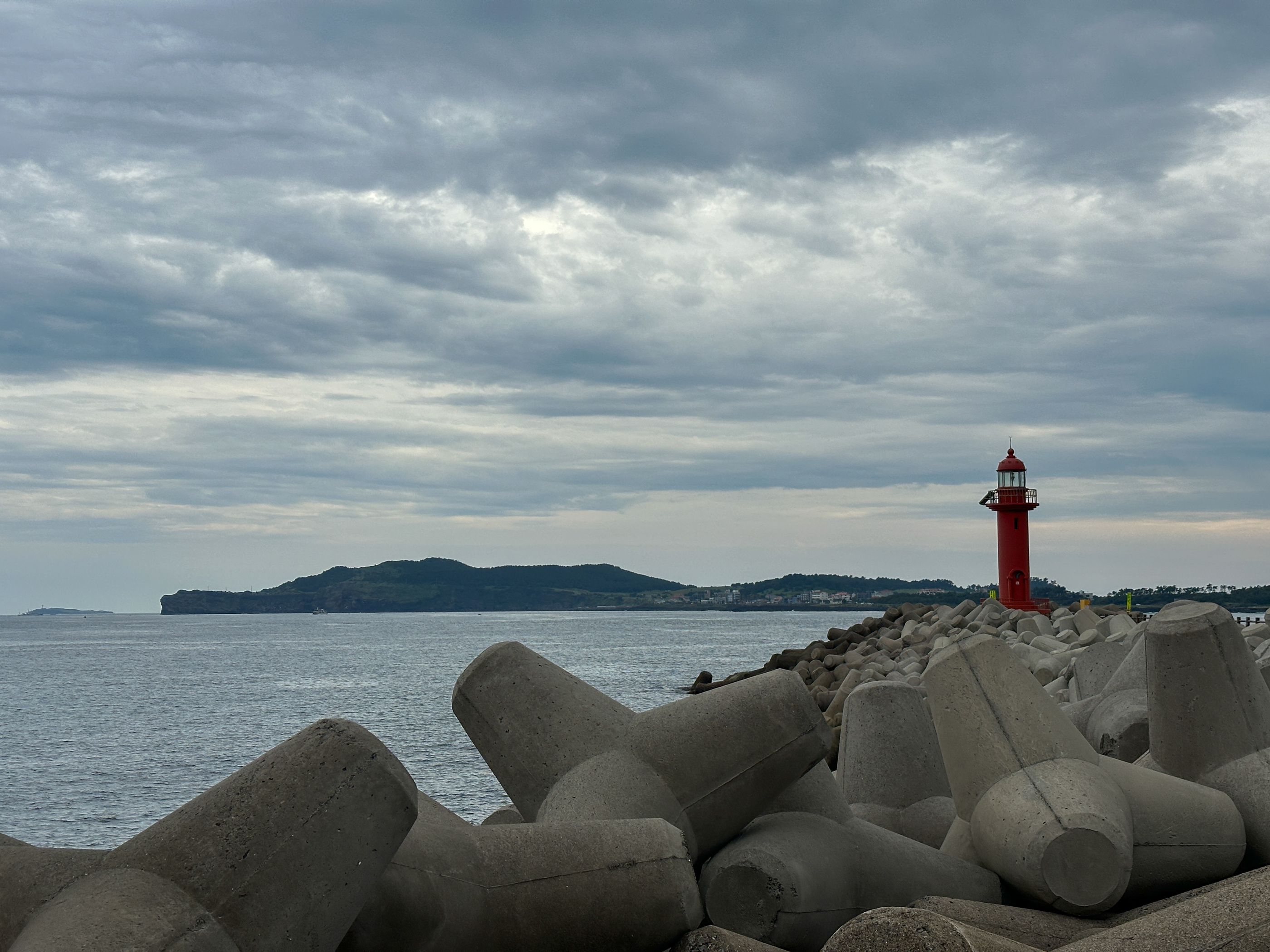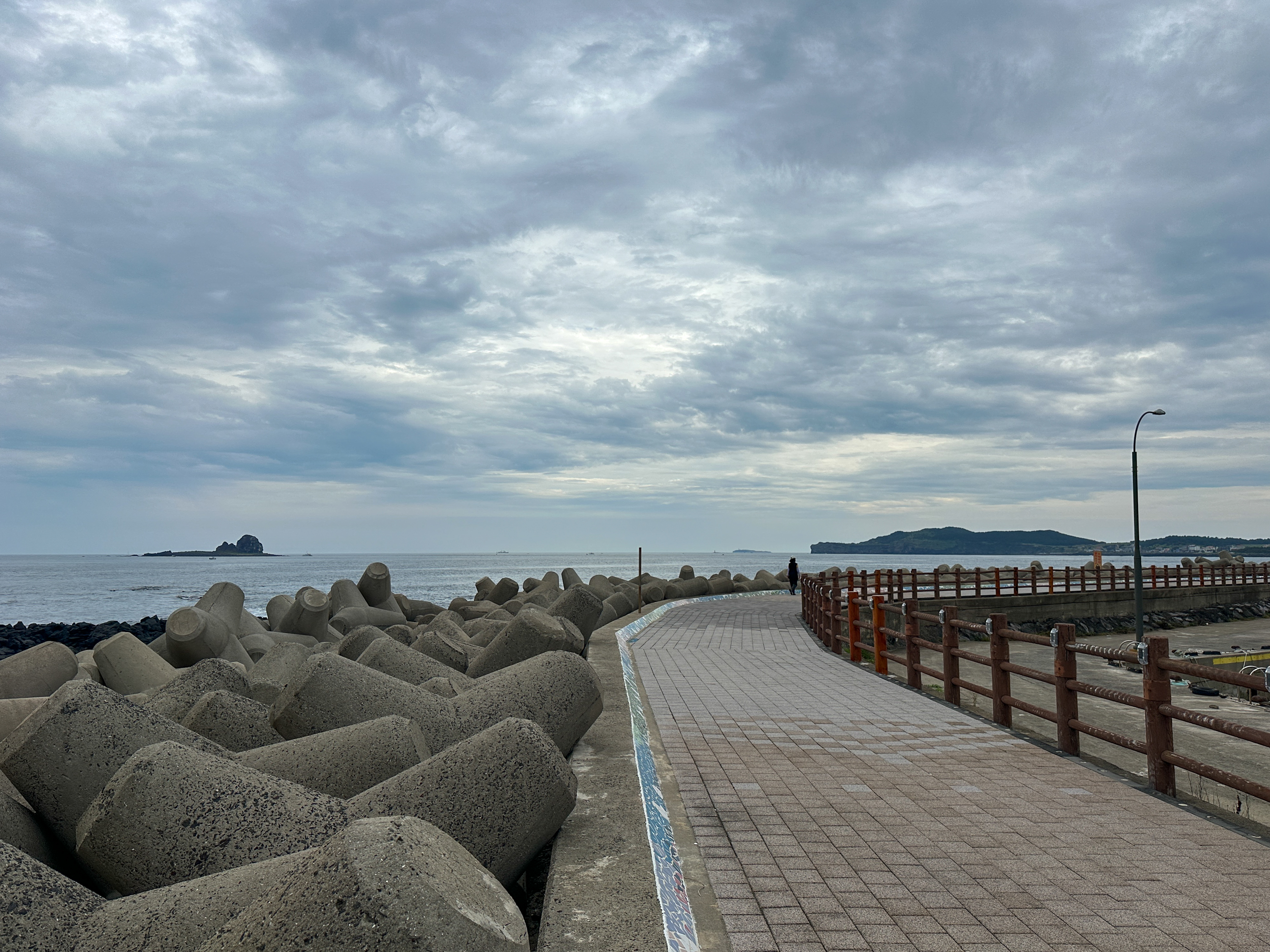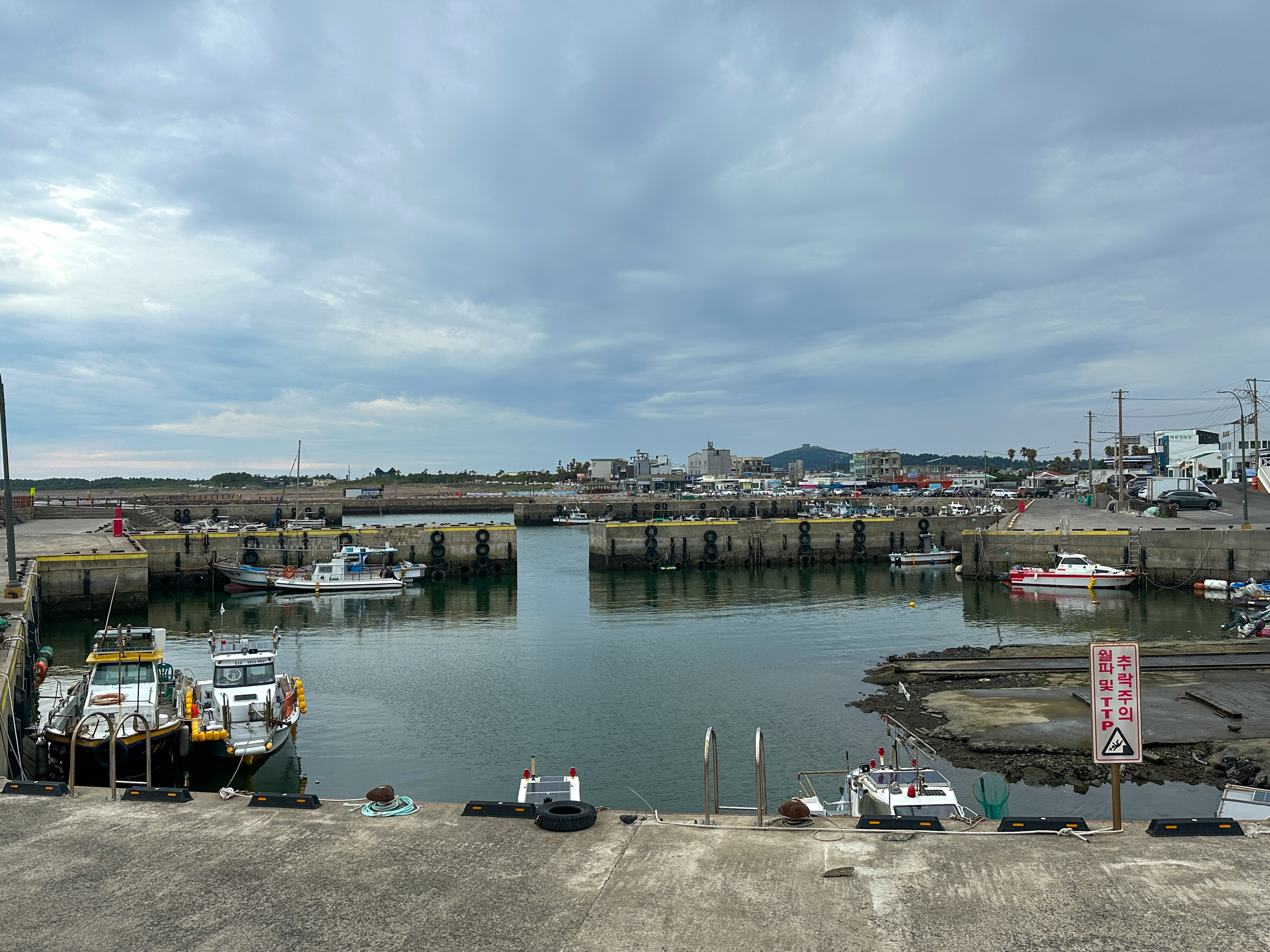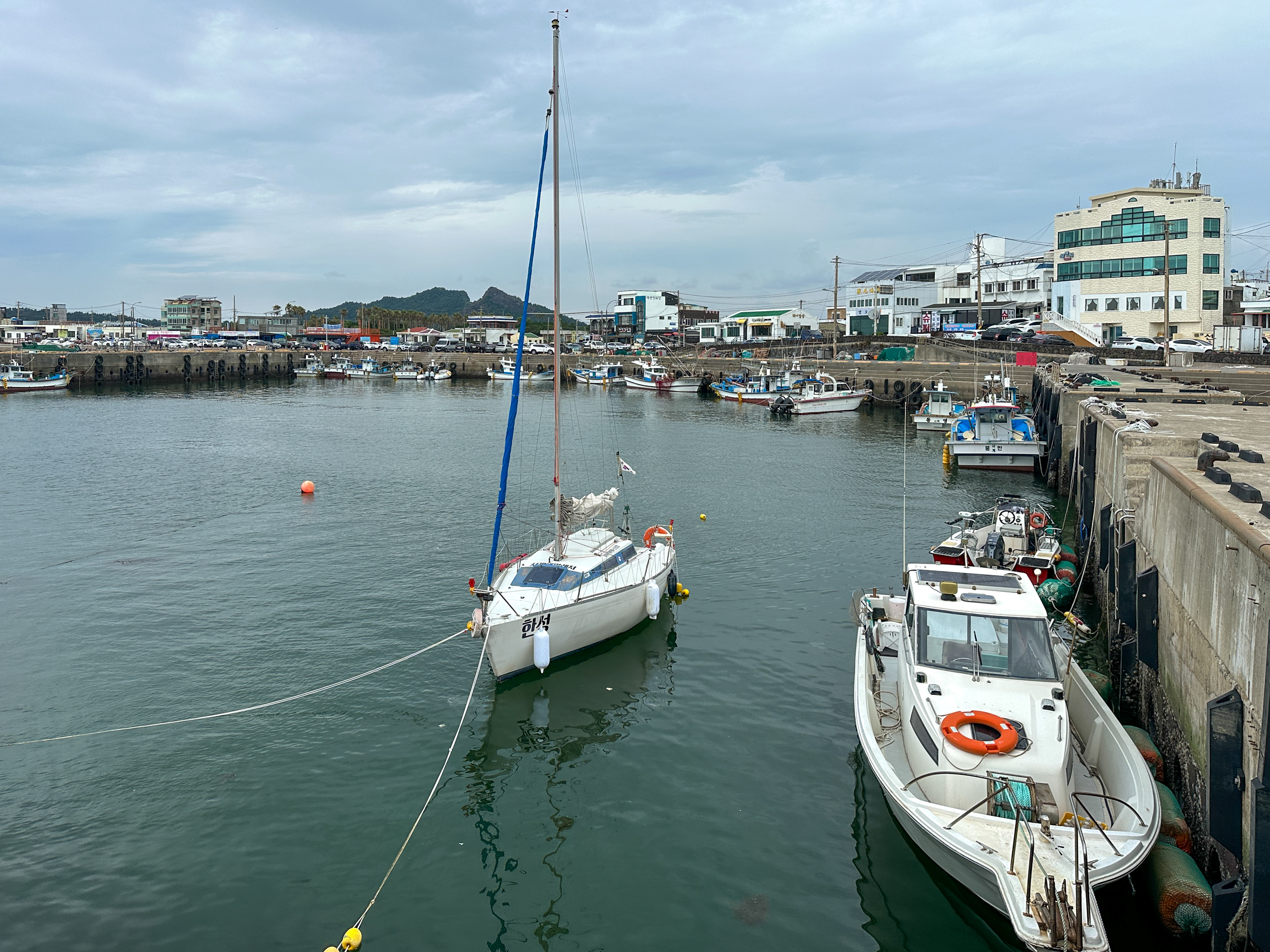 하루종일 흐린 날씨는 포구에서 방파제를 따라 걸을 때 잠깐동안 빗방울로 스쳤지만 그리고 끝이다.