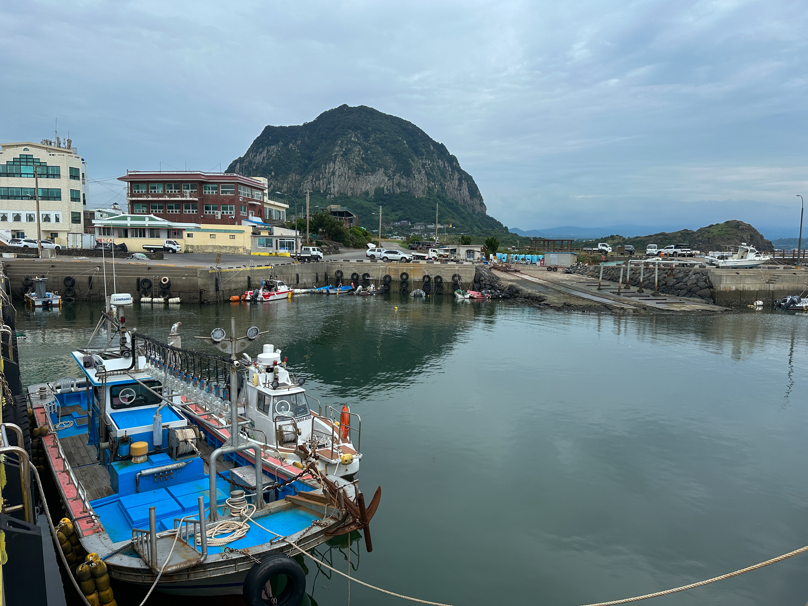 포구 앞쪽으로 '단산'이 보인다. 우리집에서 창문으로 보이는 모습과는 사뭇 다르다.