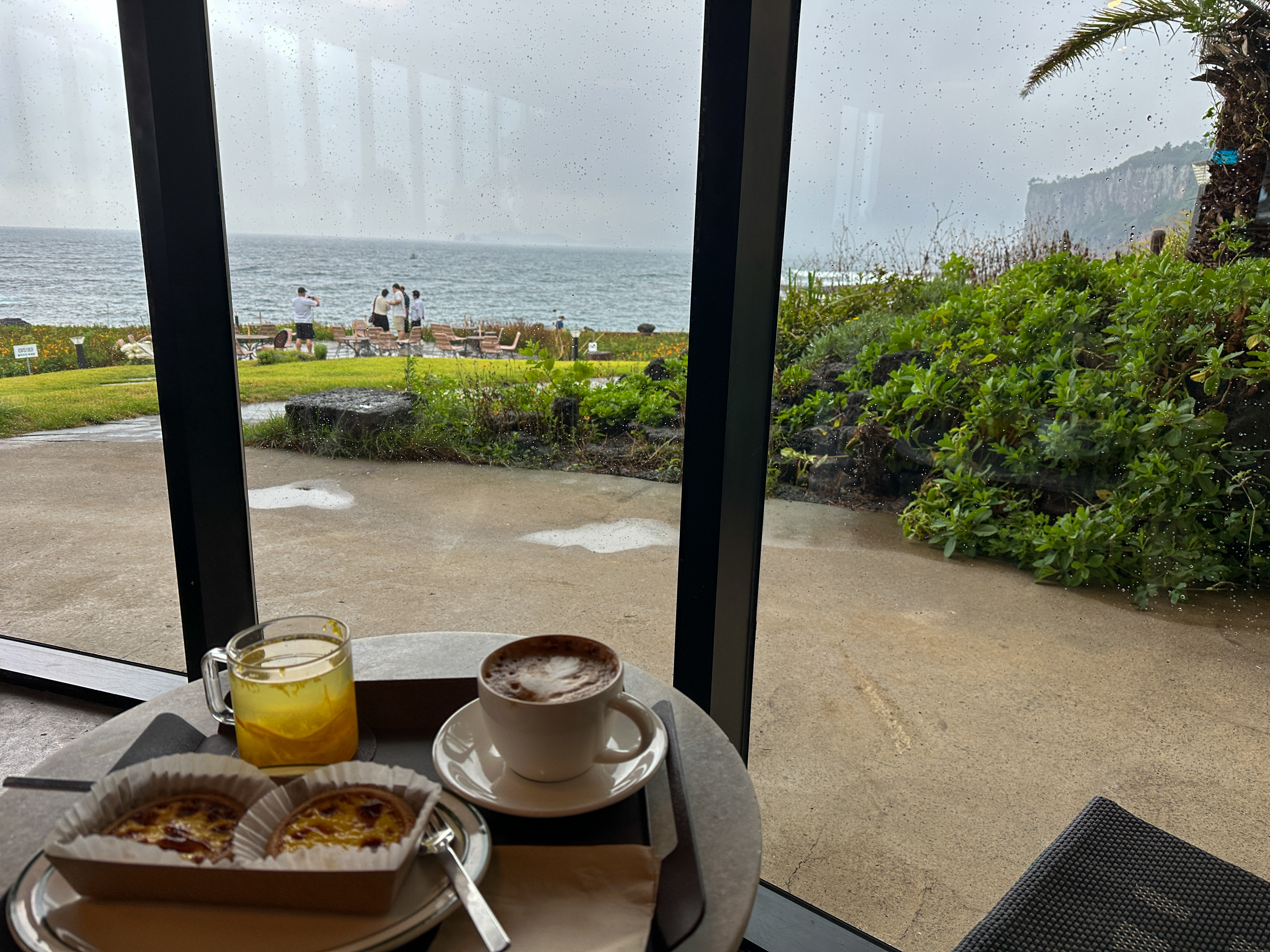 창가에 앉아 흐릿한 바다와 '박수기정'을 바라보며 1시간을 보냈다.