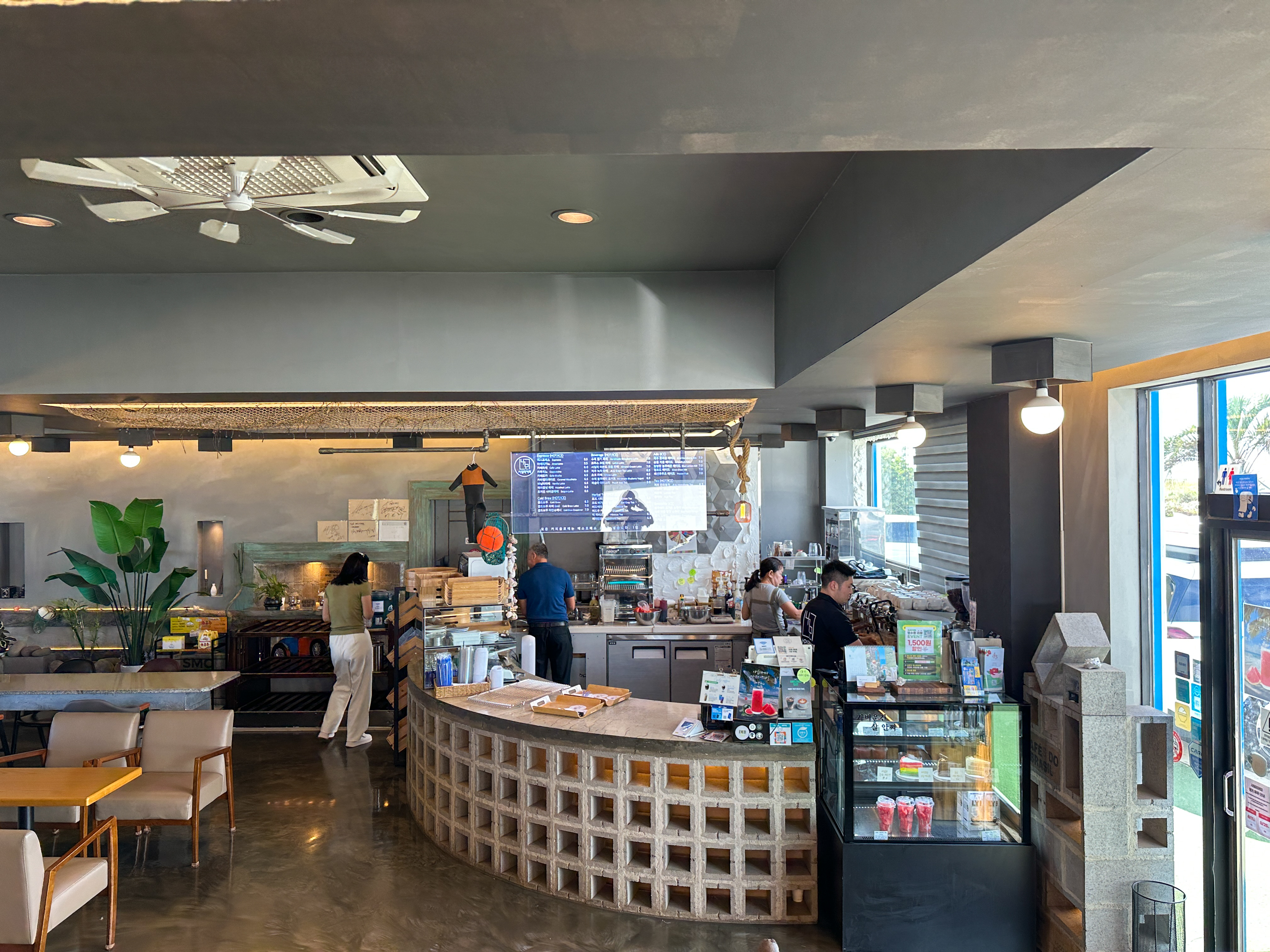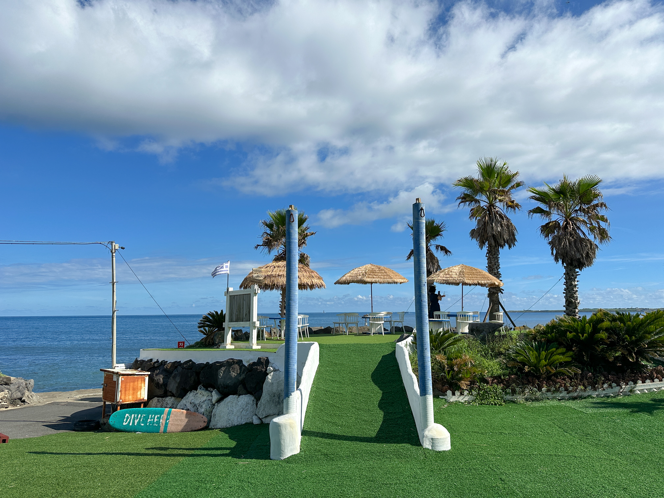 특히 카페 내부에서 해안쪽 문을 열고 나가면 이국적 느낌이 드는 풍경과 마주한다.