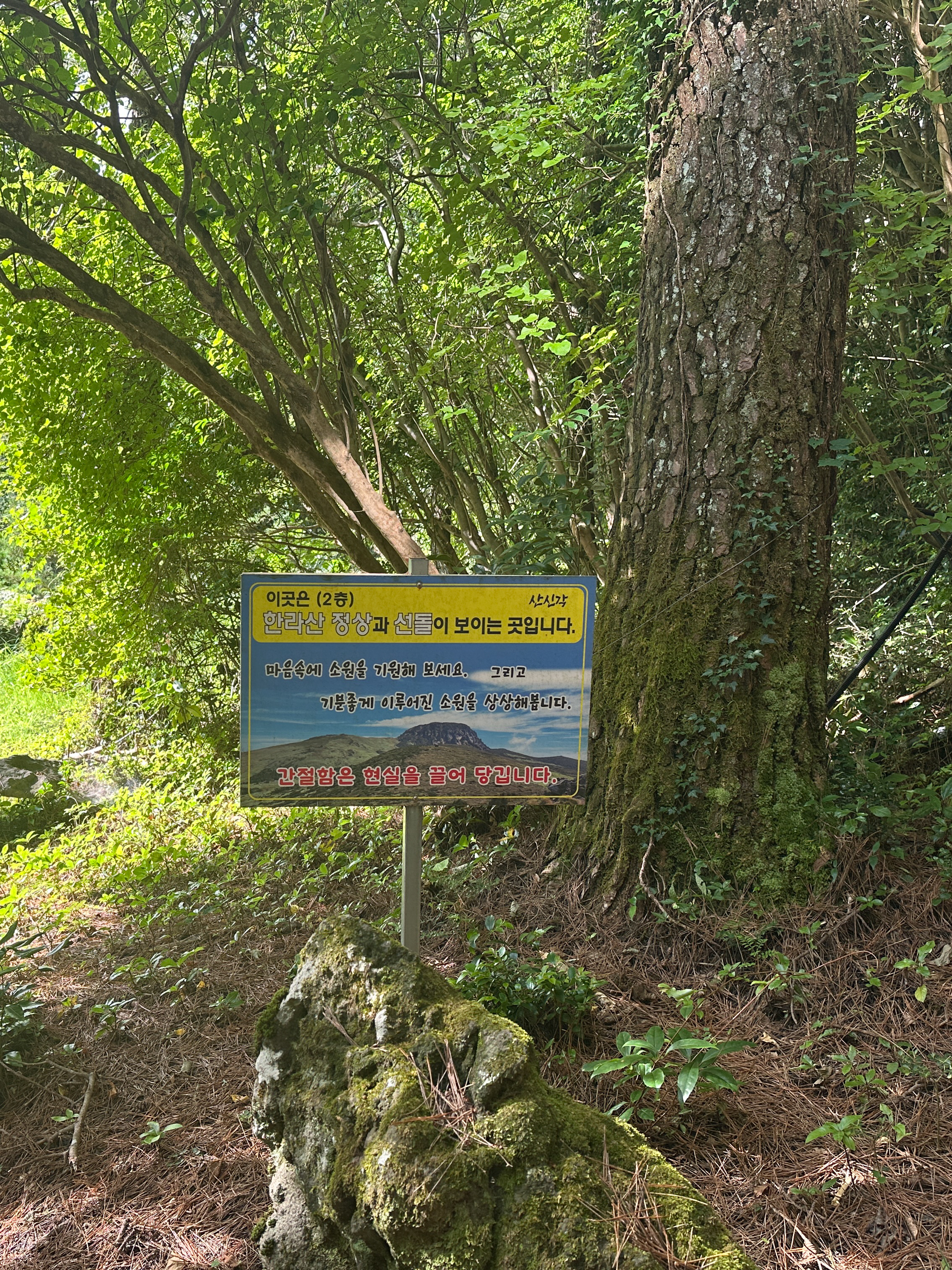 입구에는 일주문 비슷한 느낌의 '산신각'이 있는데 2층에 올라가면 한라산 정상과 선돌이 보인다 한다.