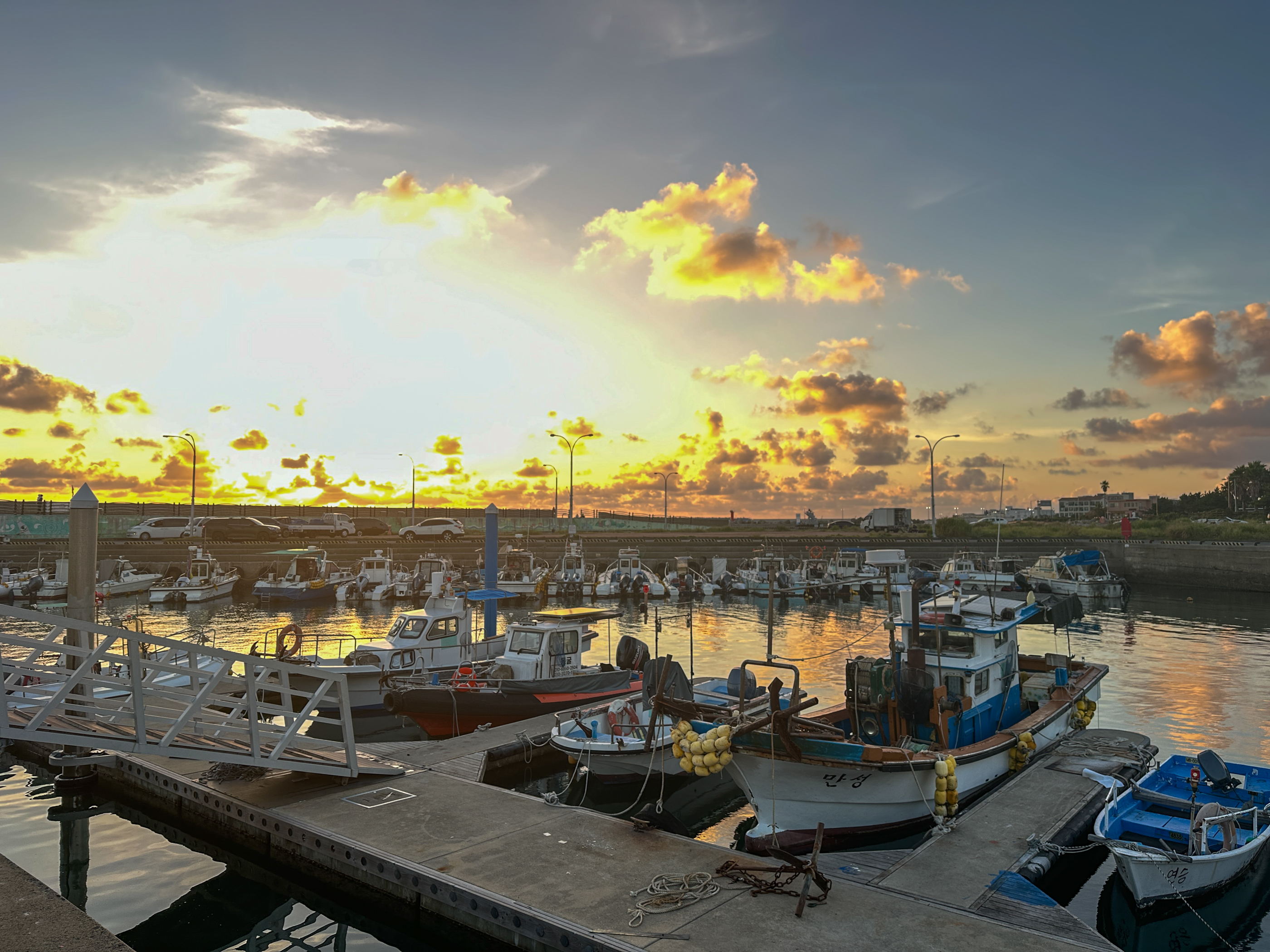 나는 일몰 시간(19시11분)에 맞춰 운진항에 나갔다.