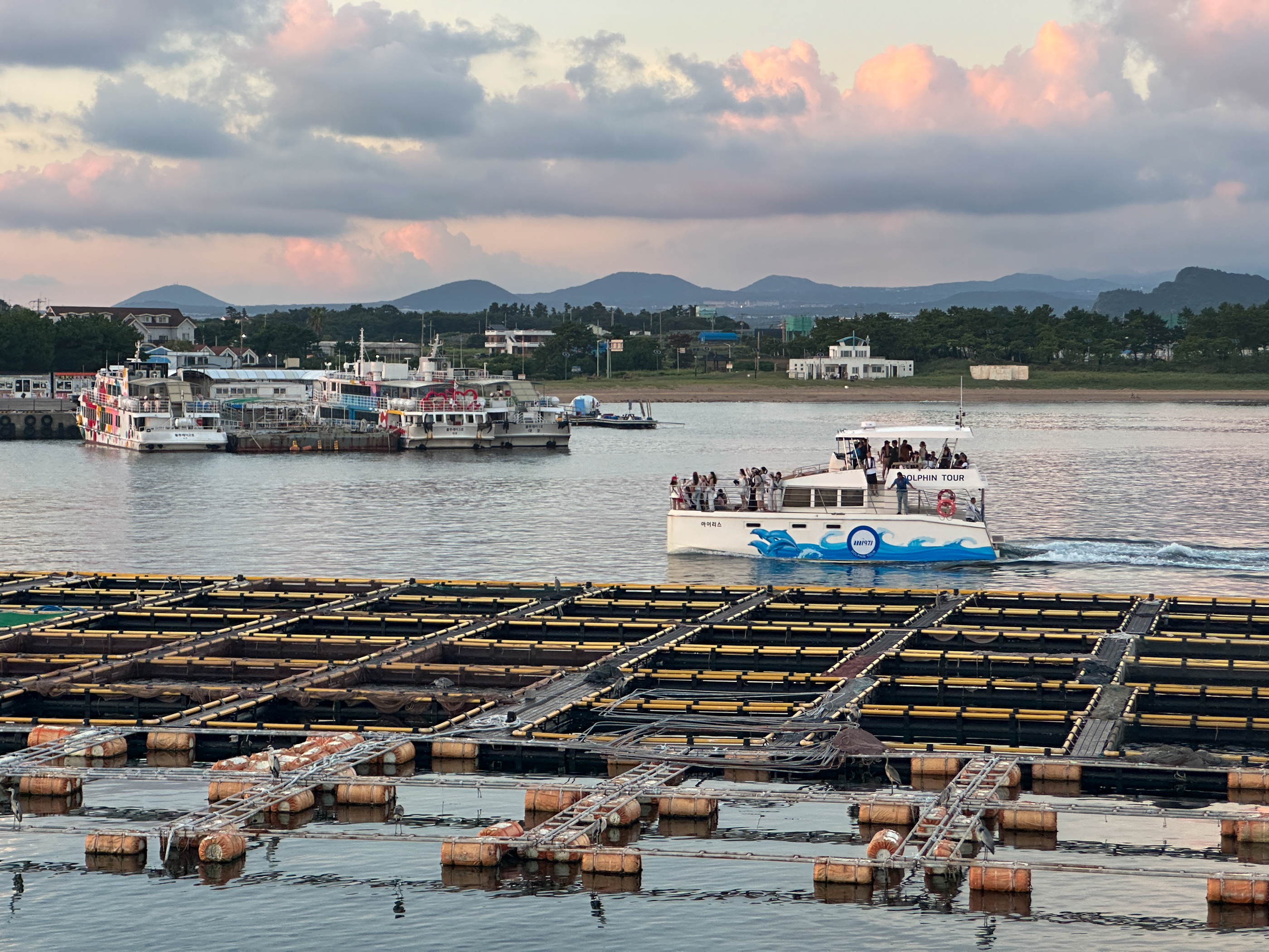 일몰시간에 맞춰 돌고래투어 배가 투어를 마치고 돌아온다.