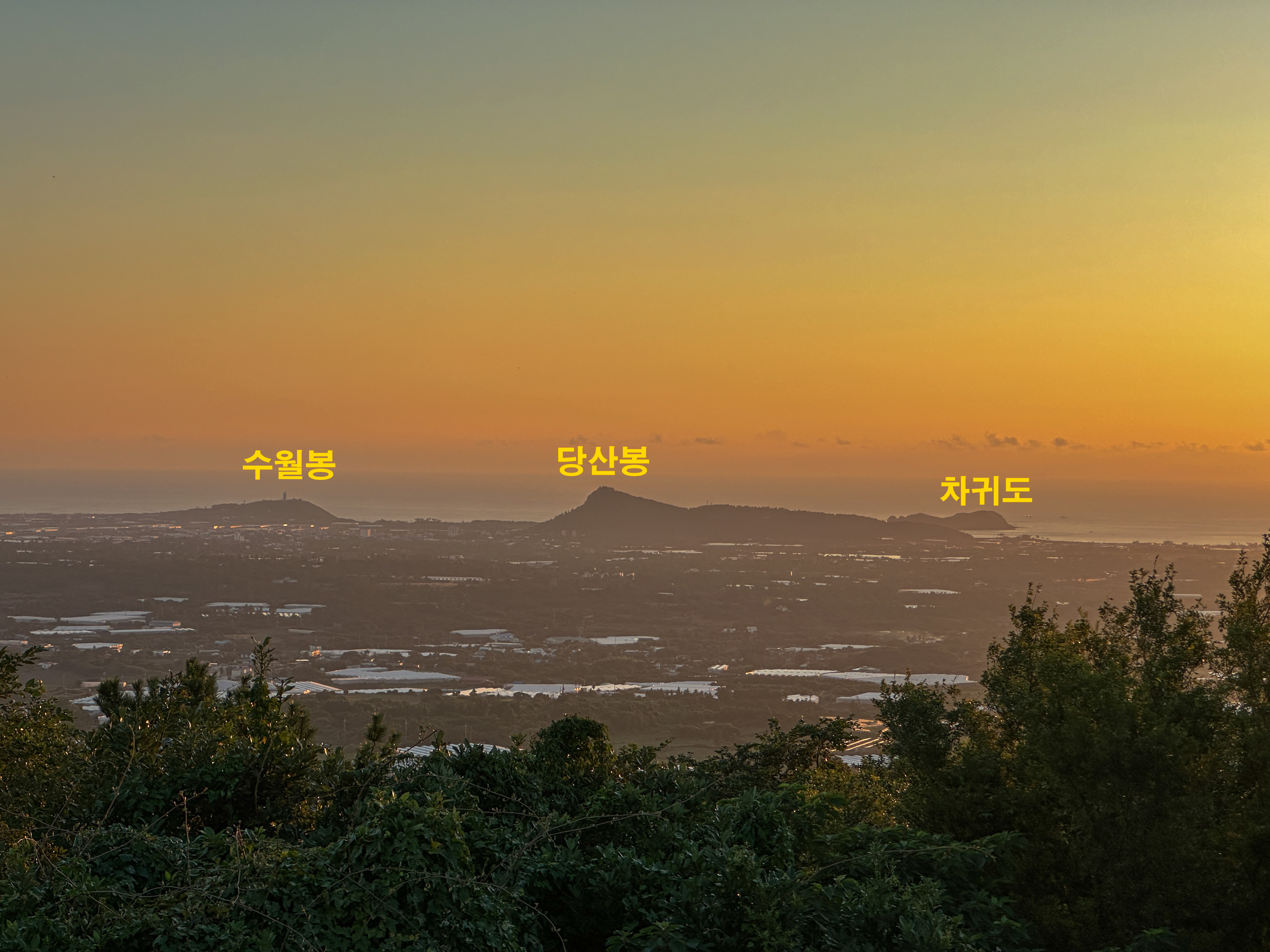 일몰과는 반대인 한라산 방향으로 서 있었기 때문이다.