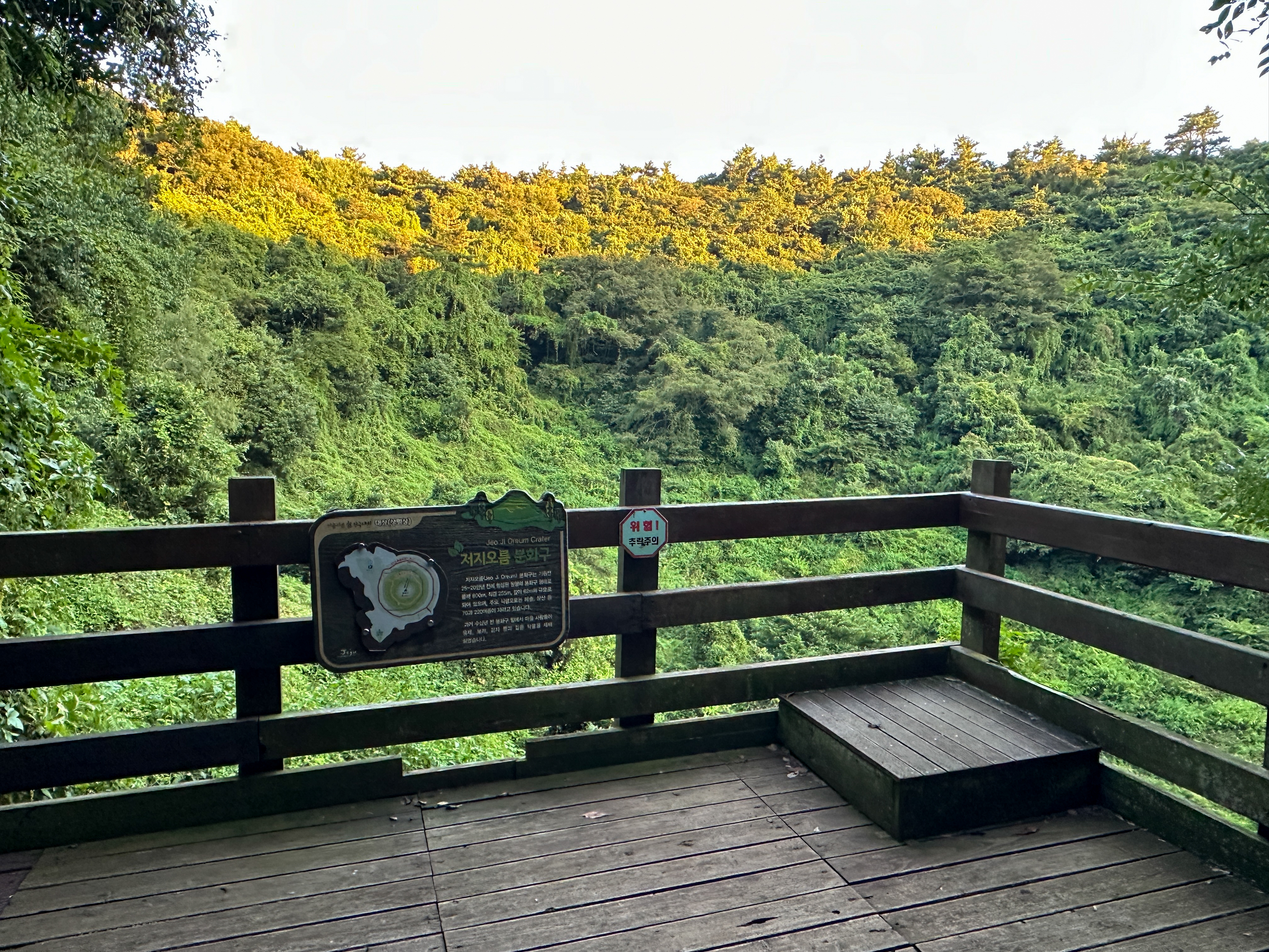 일몰까지는 시간이 있어(오늘 일몰은 18시58분) 분화구 관찰로까지 내려 갔다. 표지판 거리가 잘못됨 100m가 아니라 200m임