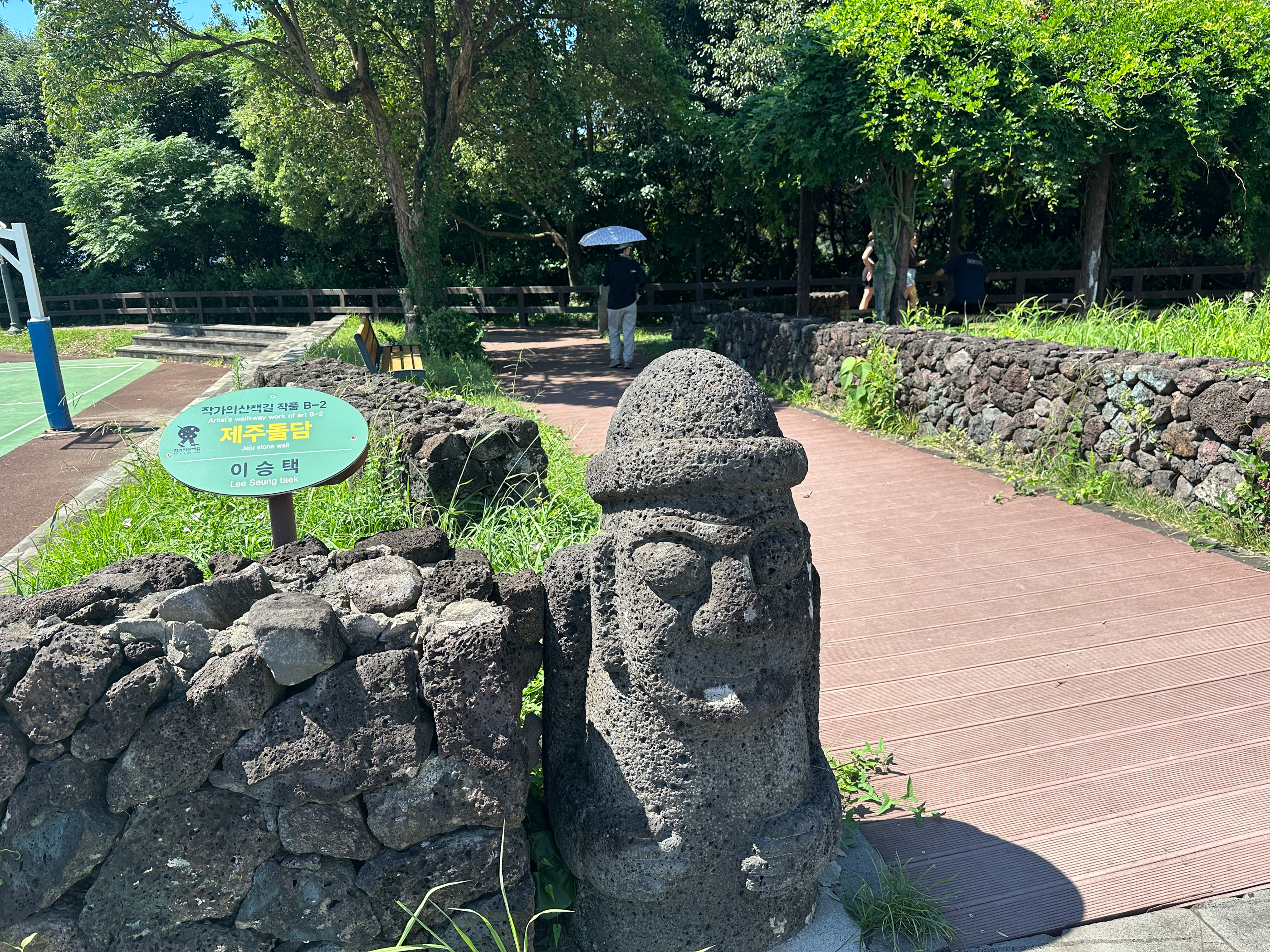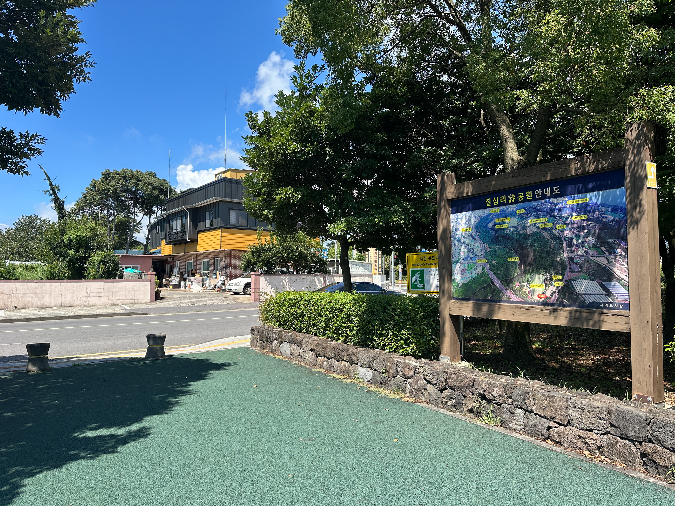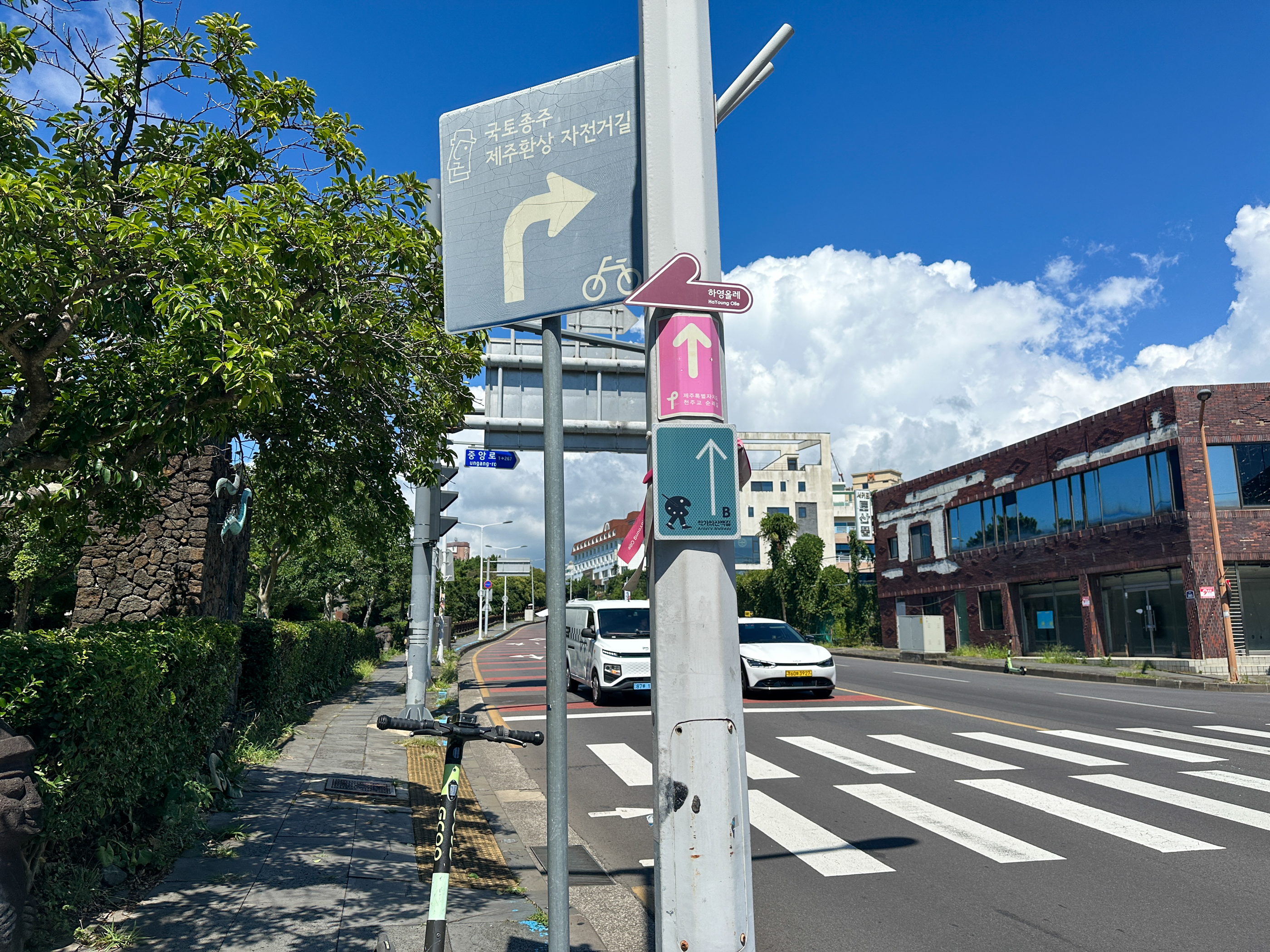 '서귀포올레시장' 안으로 우회전 하는 방향표시표가 있었는데 그 이후로는 순례방향표시표를 찾이 못했다. 올레시장에서 우리가 전에 스시를 먹었던 오거리 비슷한 곳 이리저리 찾아봤지만 없다. 더위에 지치고 시간을 많이 소비했다. 결국 그냥 무시하고 '이중섭거리'로 갔다.