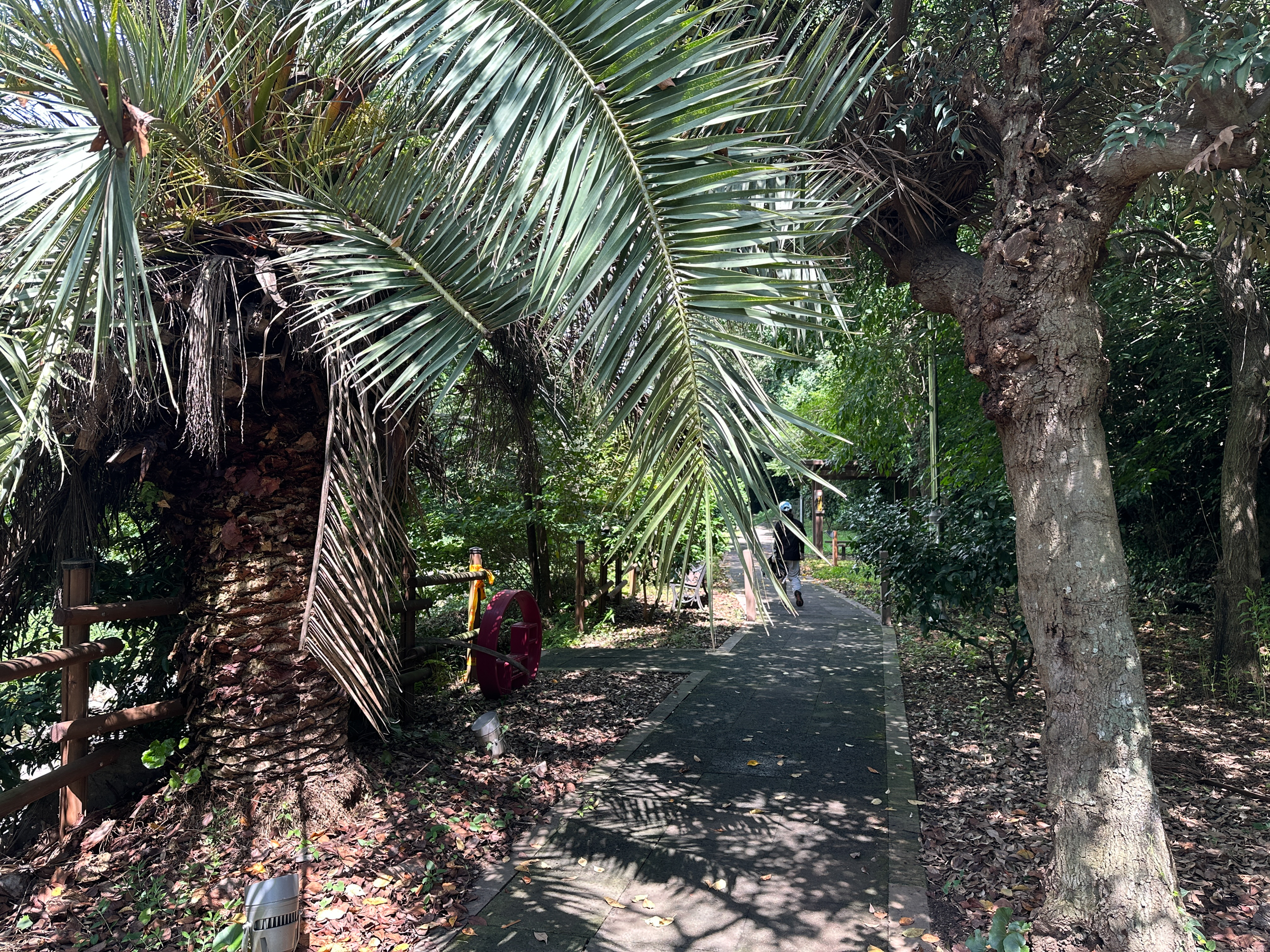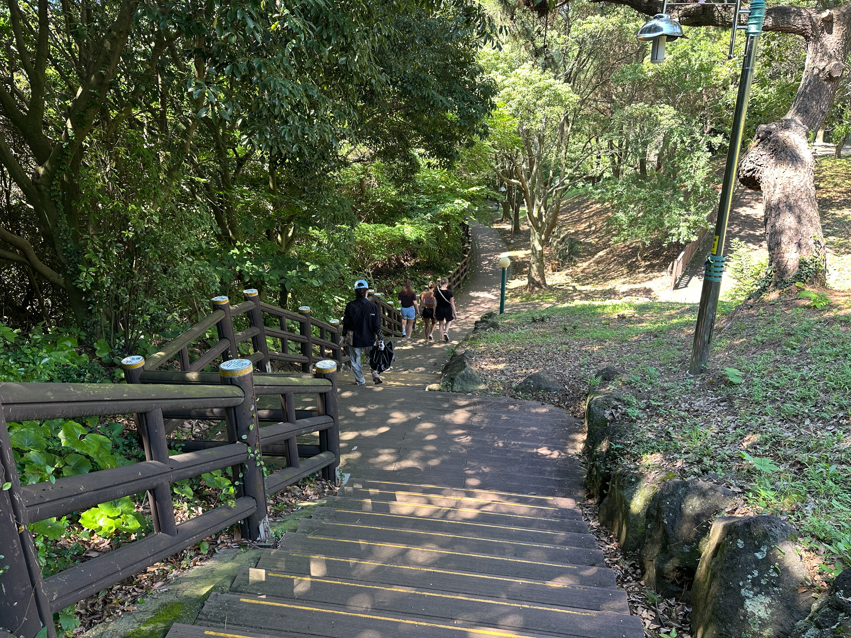 천지연 윗길 산책로를 걷는다. 나무그늘이 이어지는 숲 속 같은 느낌이다.