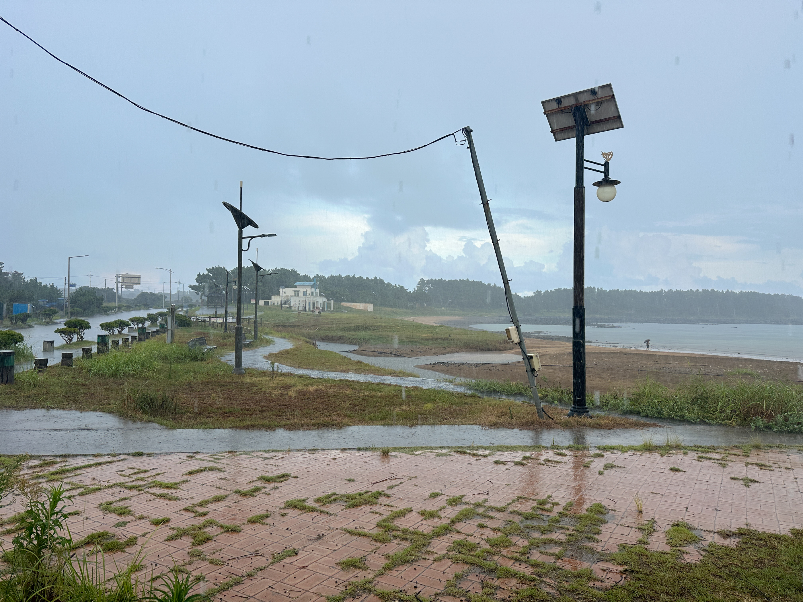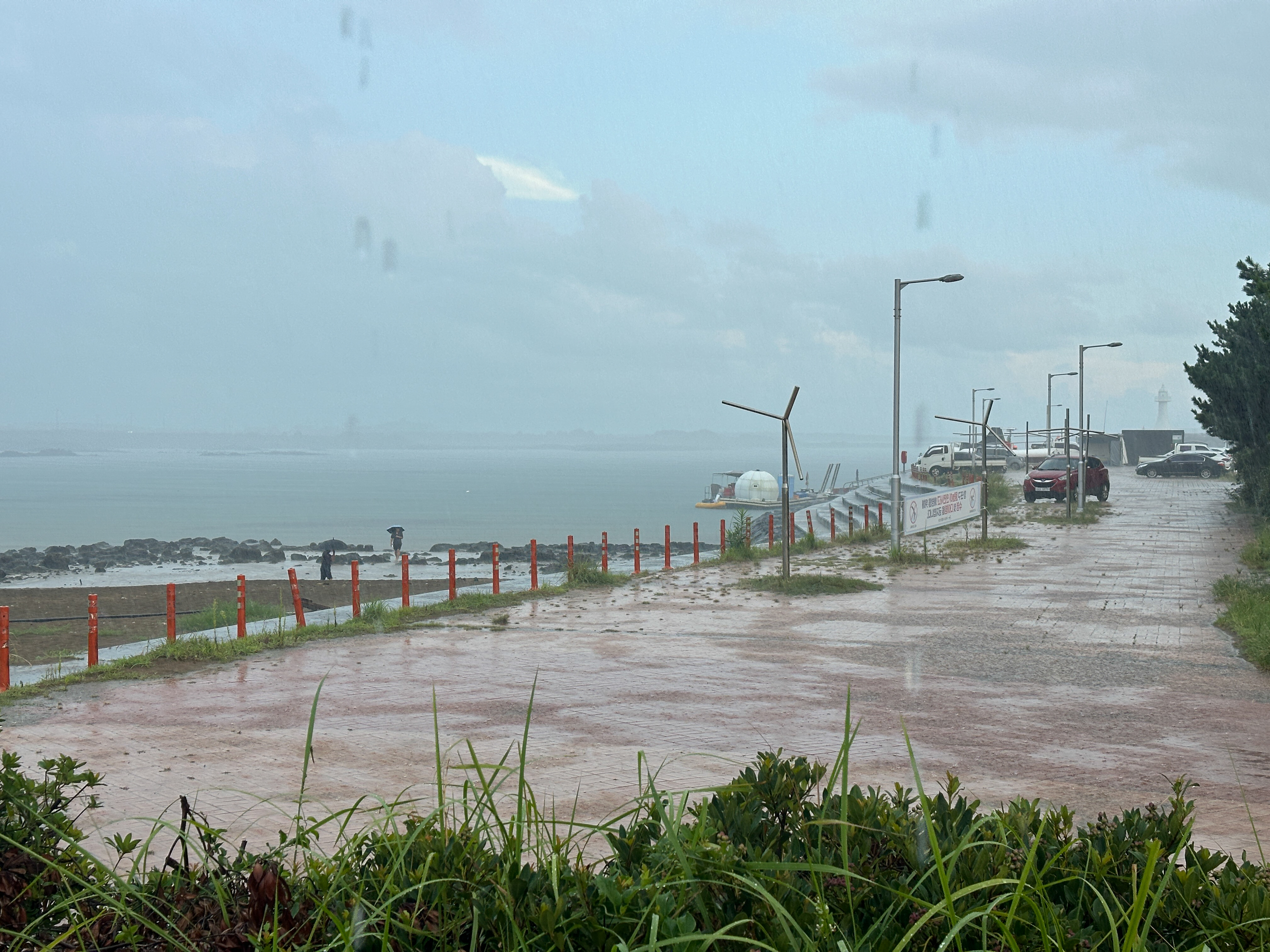 모처럼 걸어서 하모해변에 나갔더니 비가 쏟아지기 시작한다.