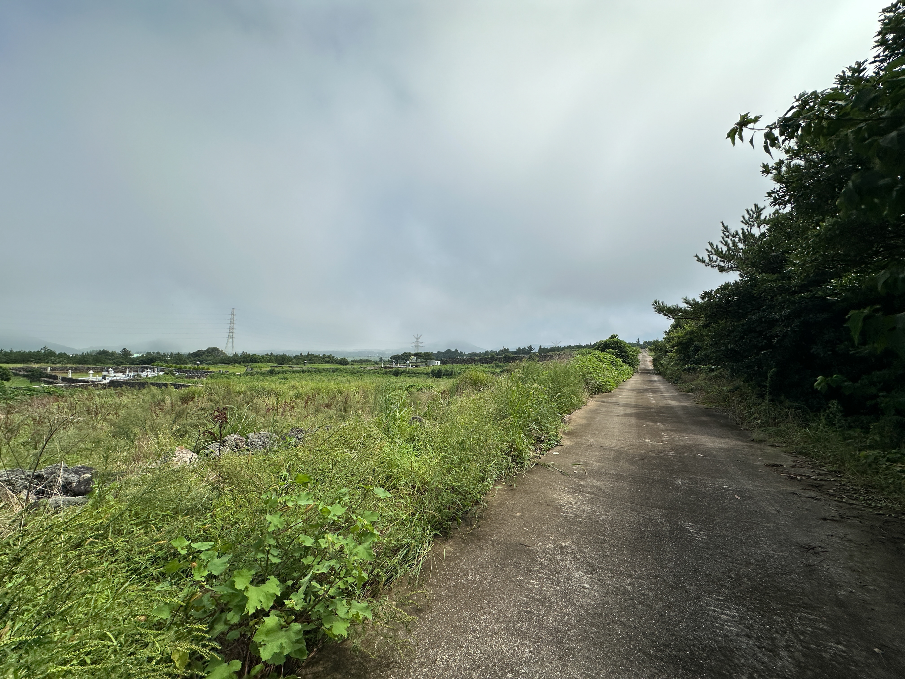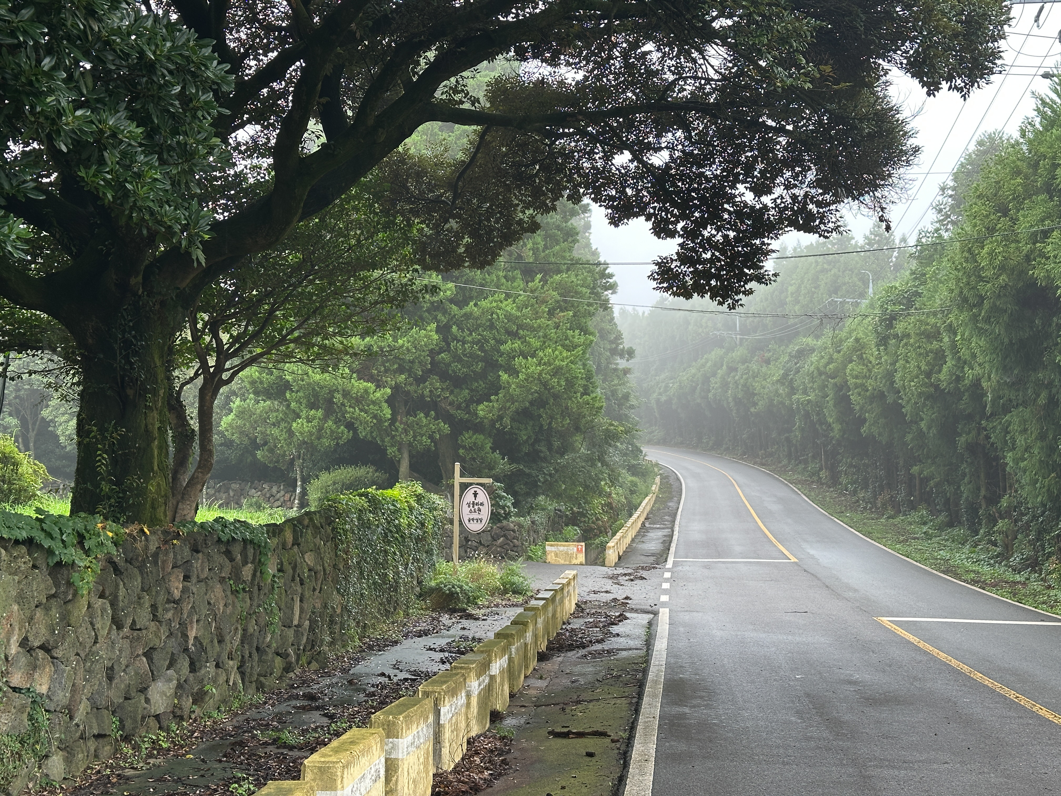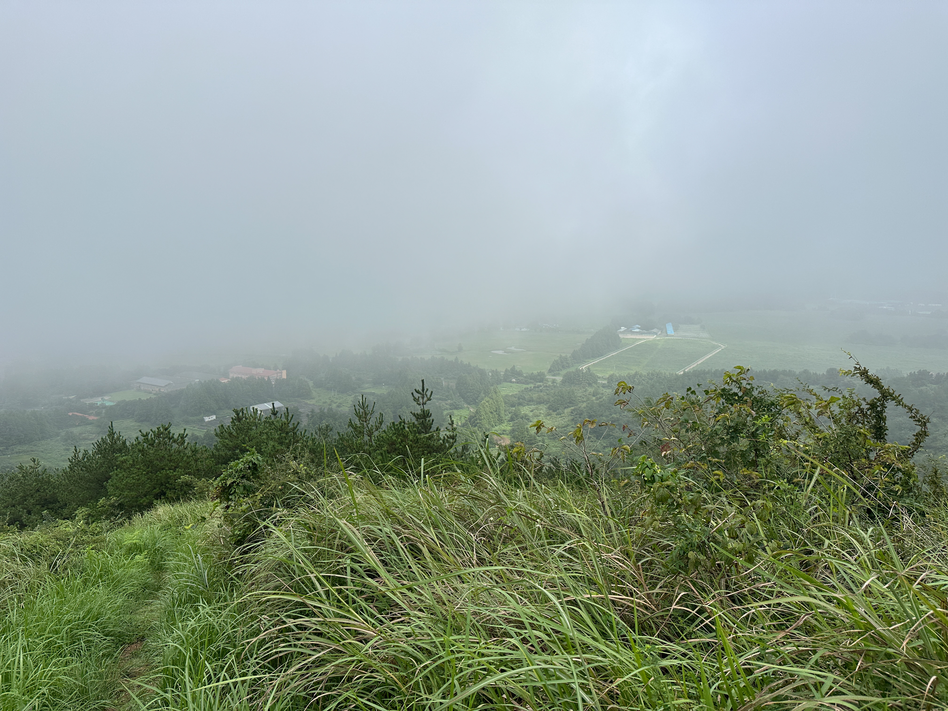 잔뜩 흐리고 안개가 자욱하던 중산간 날씨는 이슬비로 변했다.