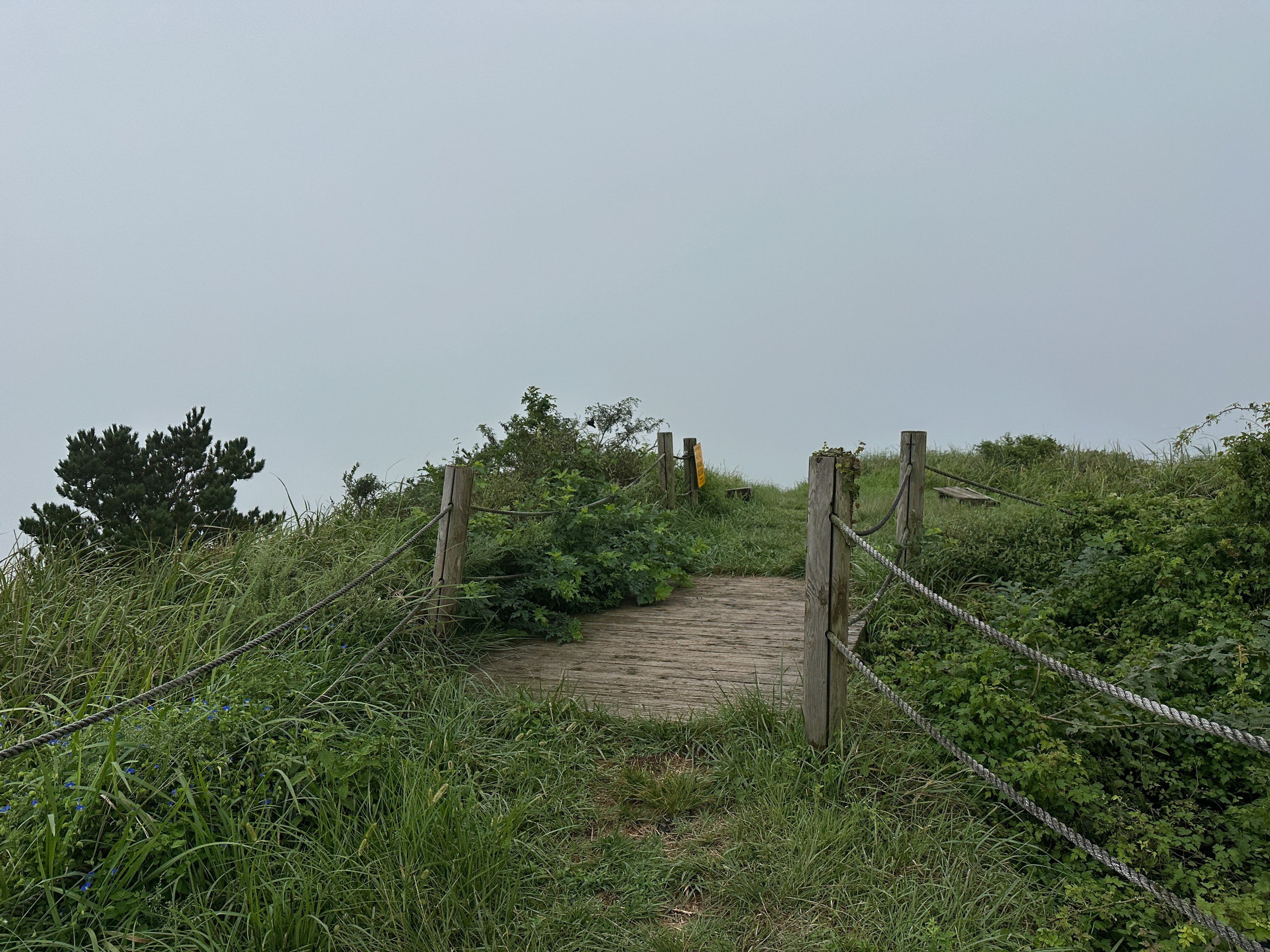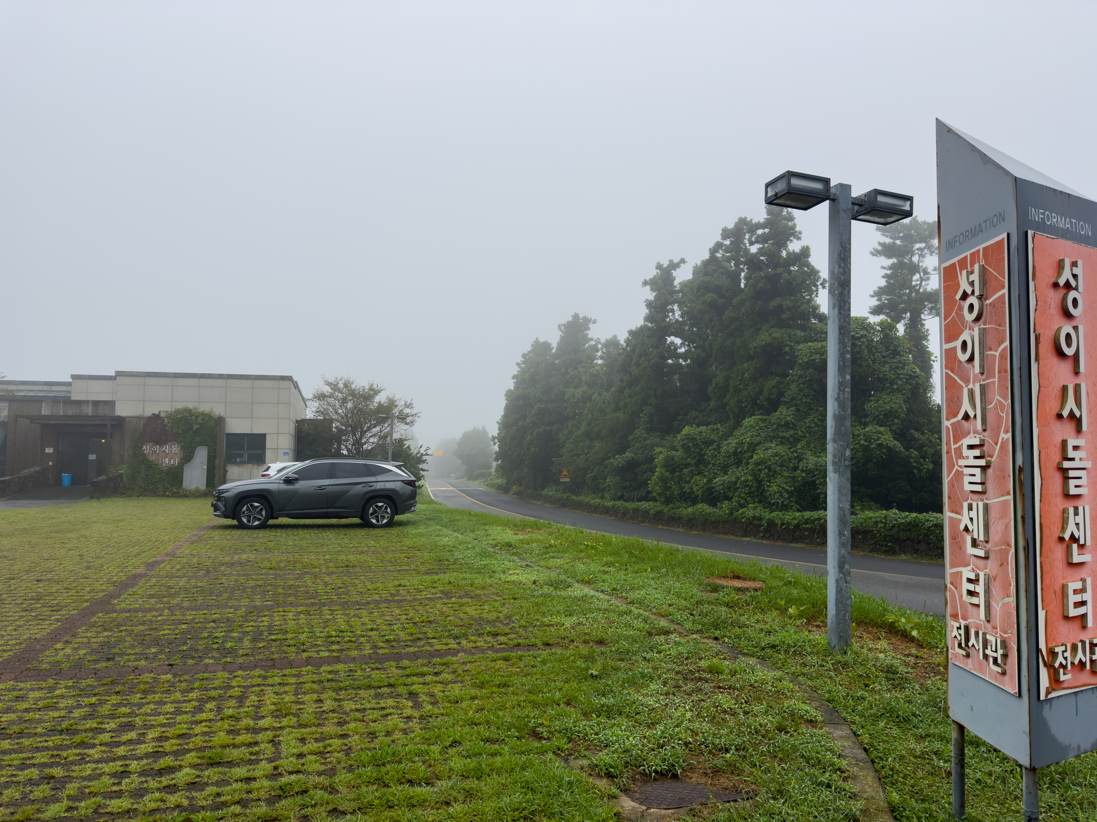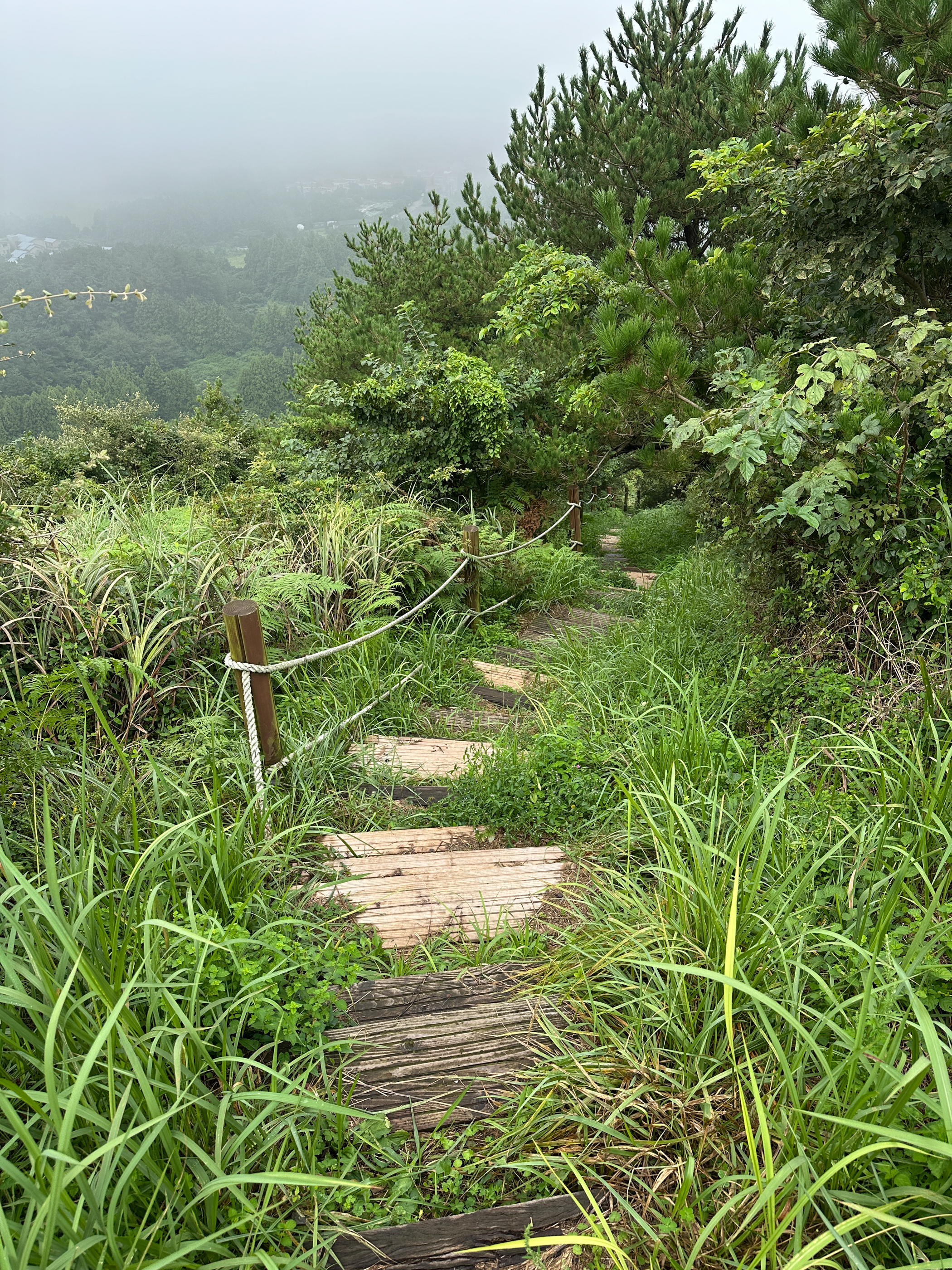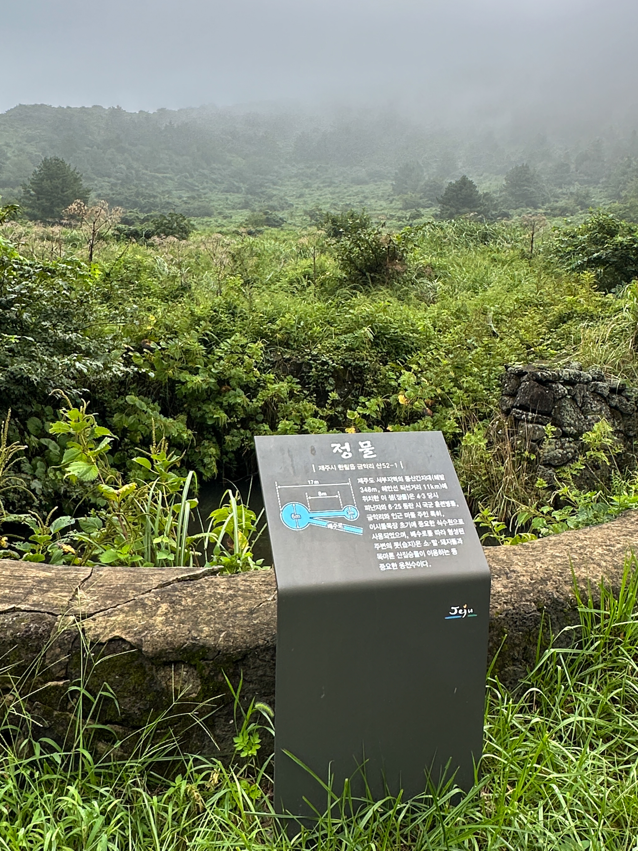 잔뜩 흐리고 안개가 자욱하던 중산간 날씨는 이슬비로 변했다.