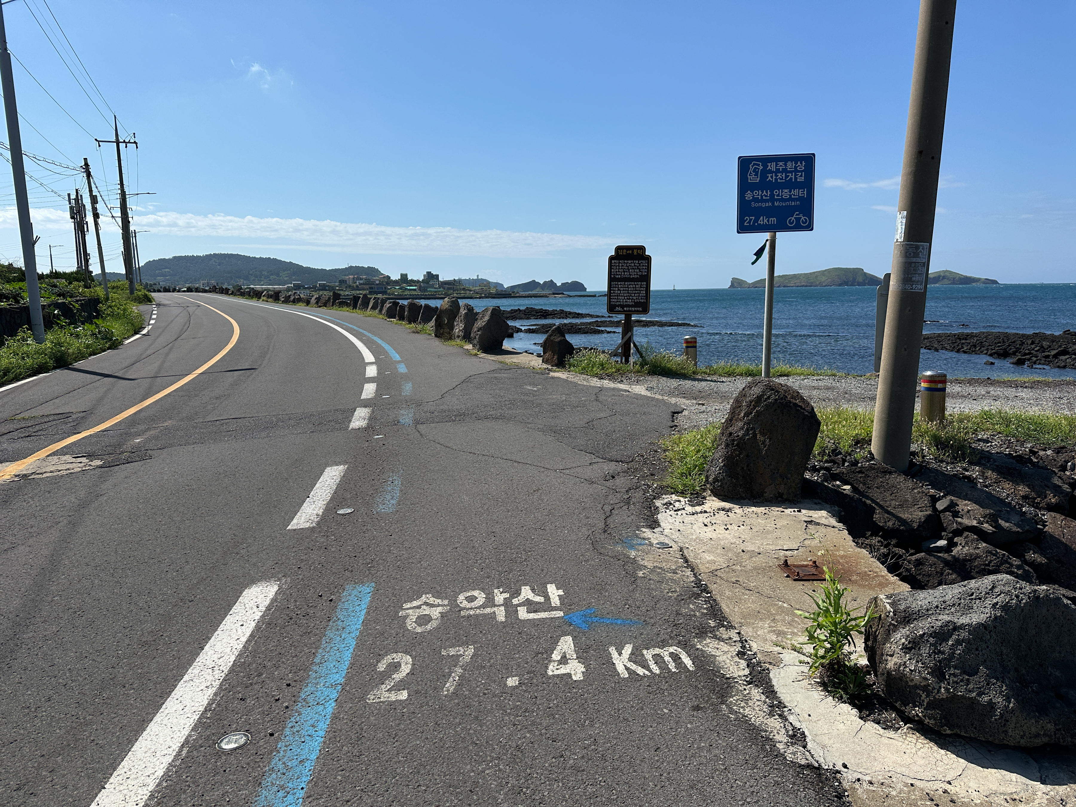 뒤를 보니 제주환상자전거길은 송악산인증센터까지 27.4km가 남았다.