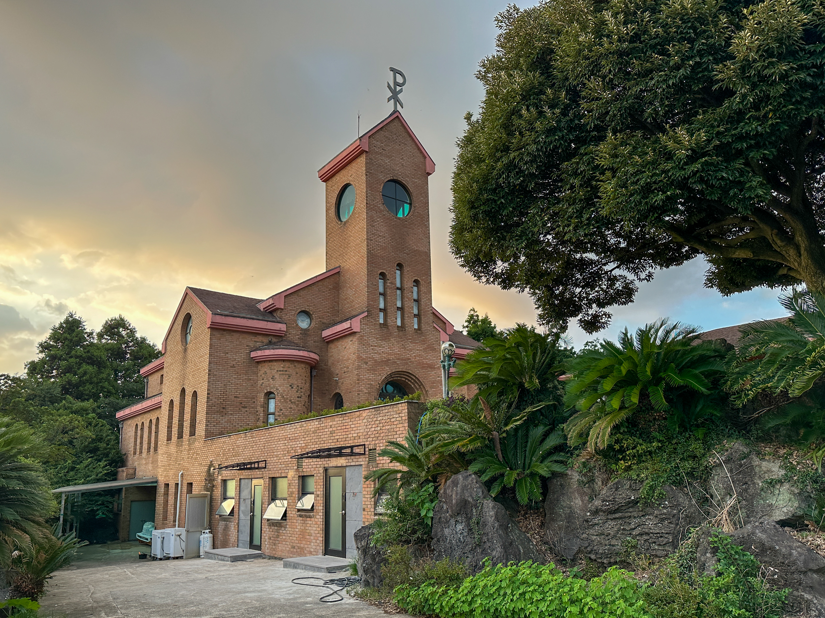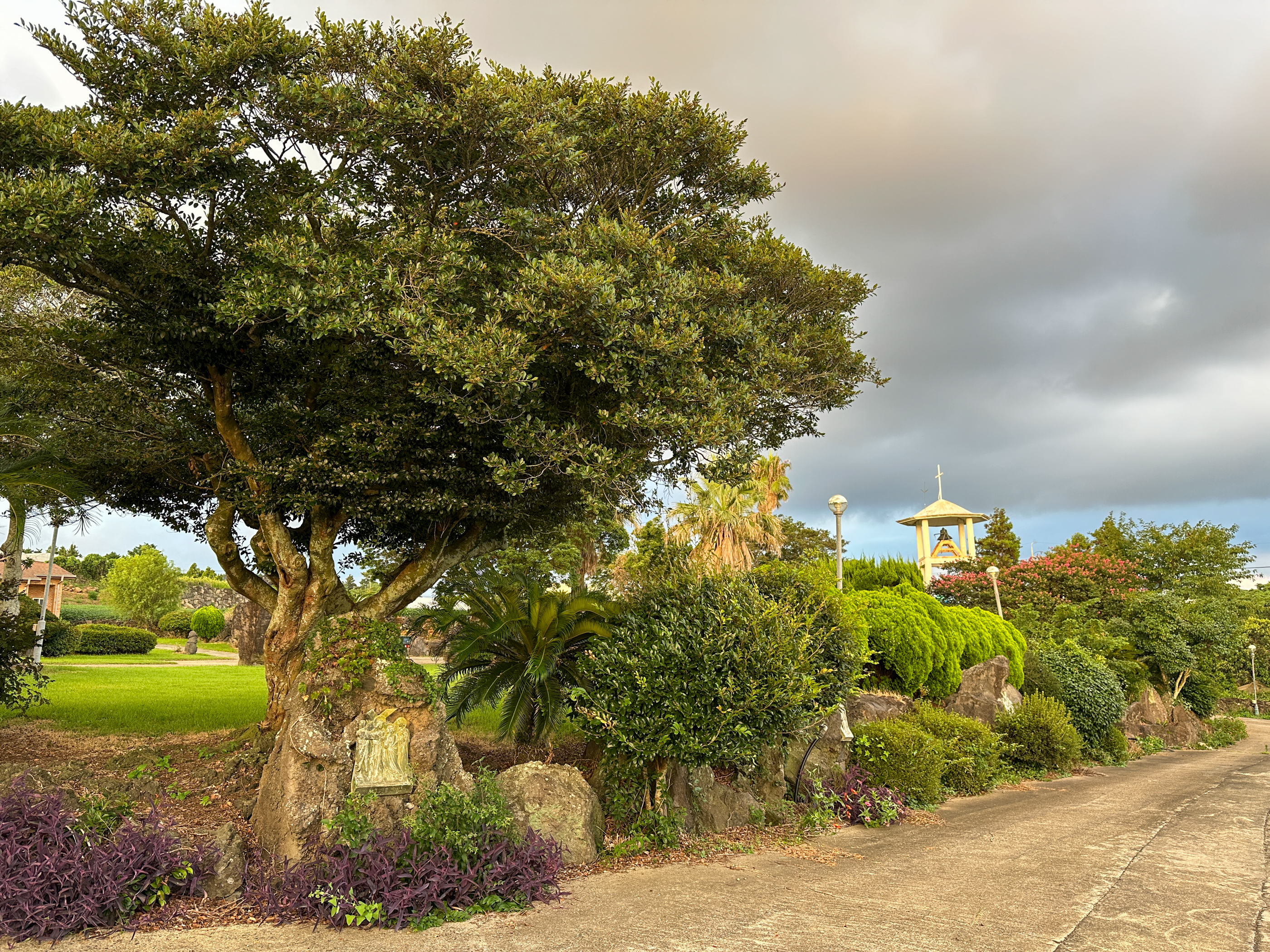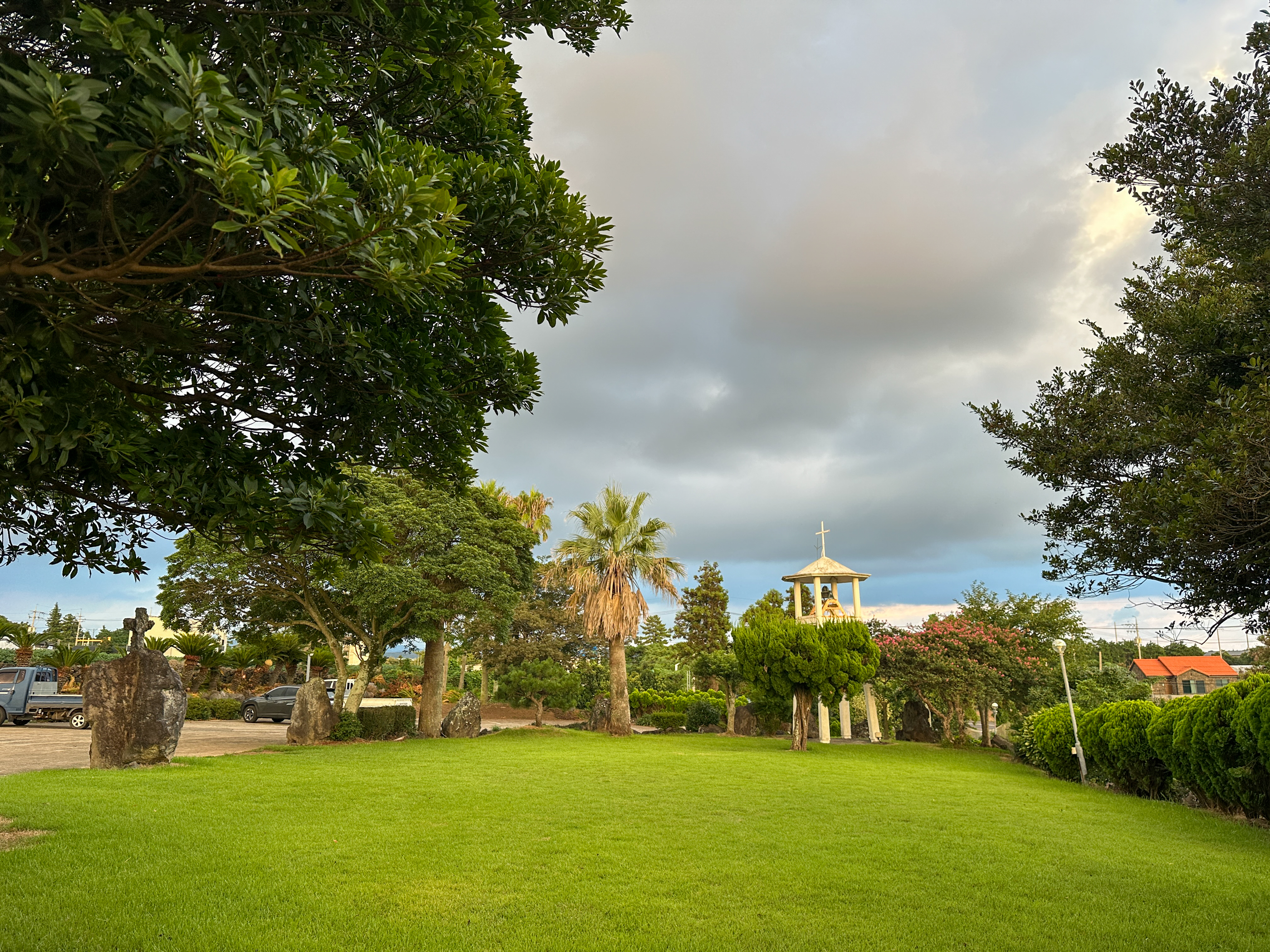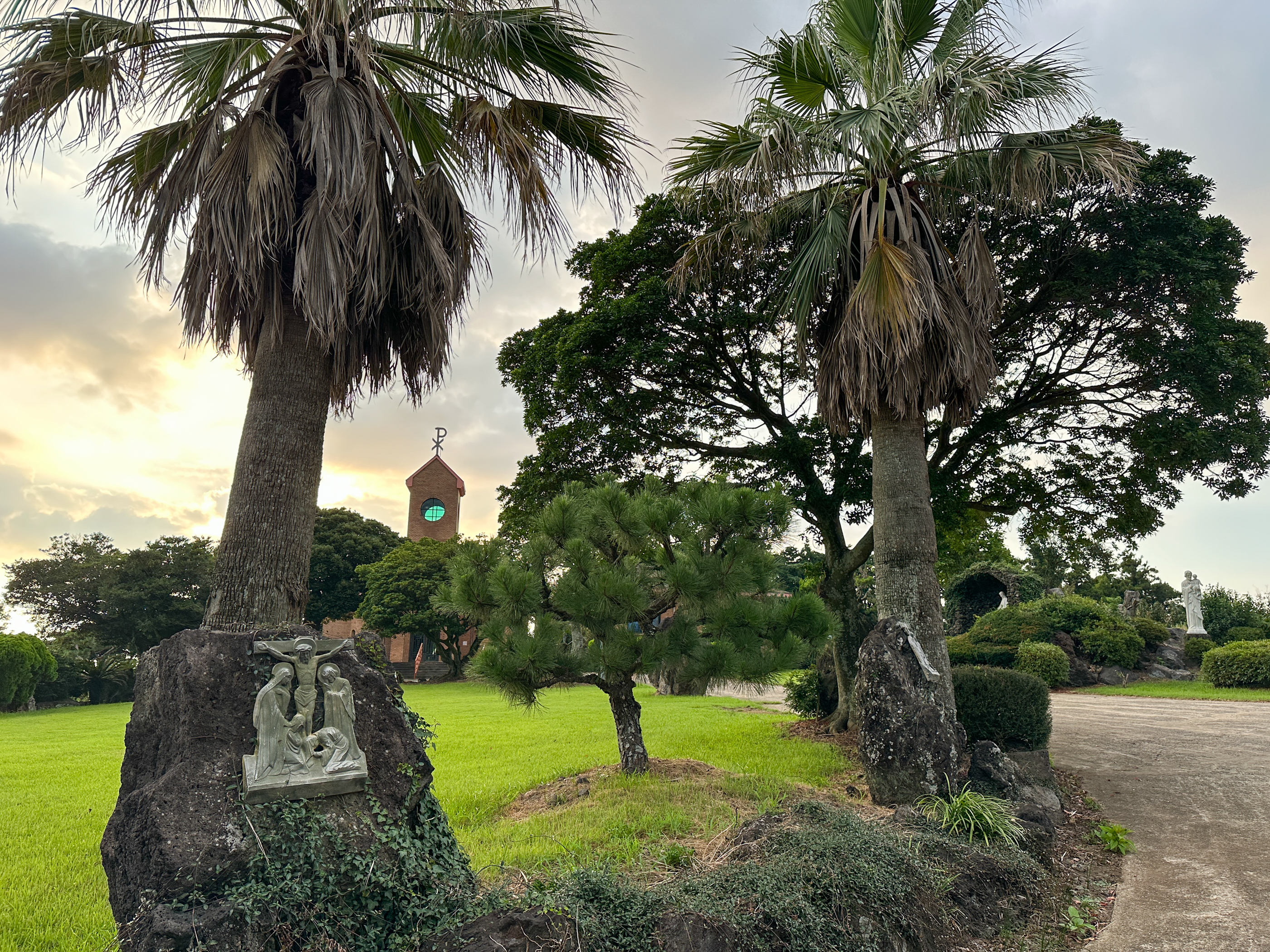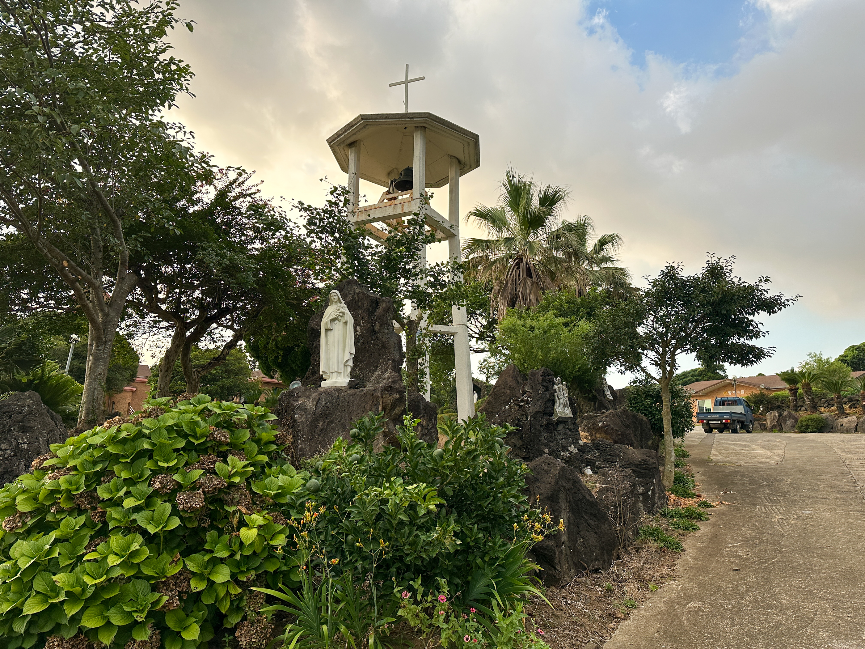 종탑주변 정원을 경계로 십자처가 있다.