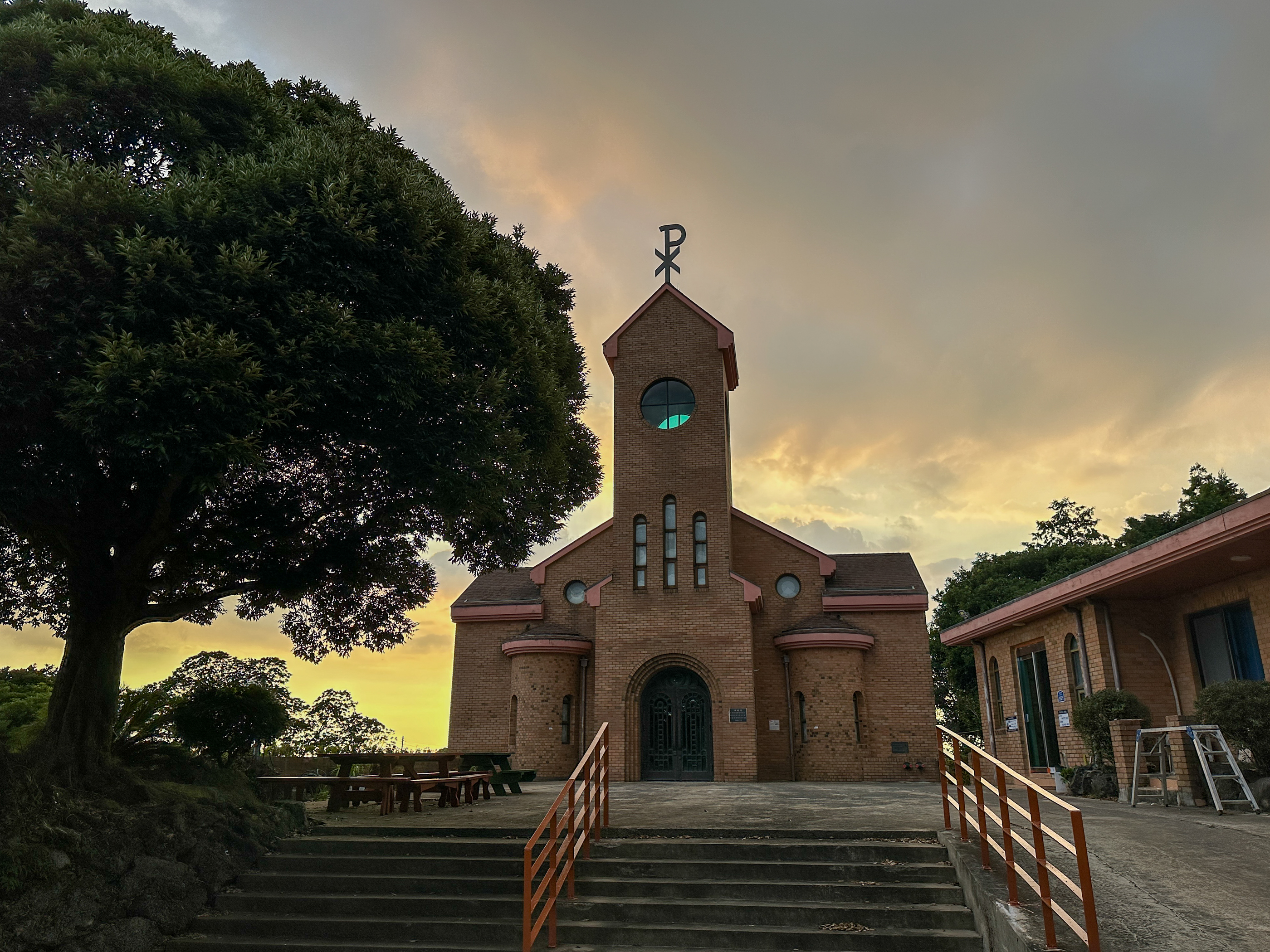 성전을 나오면서 바라 본 노을이 아름답다.