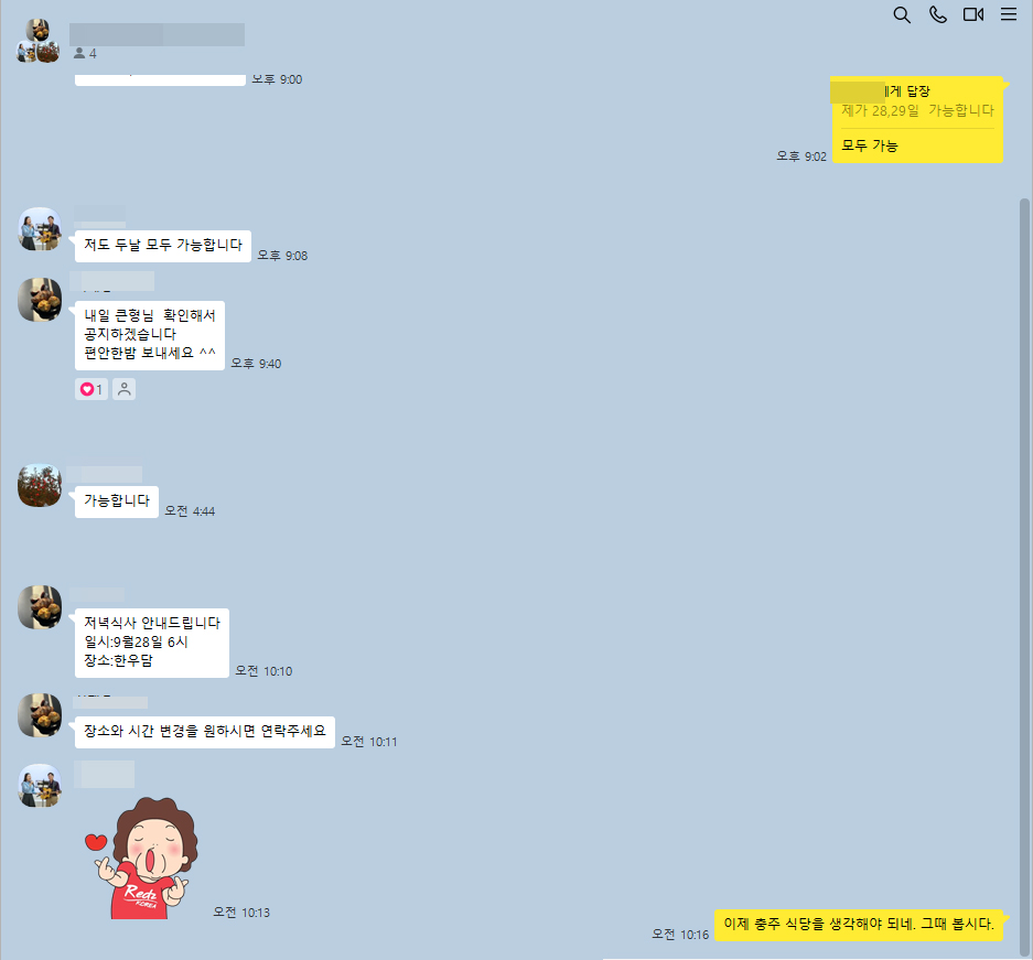 오늘은 다음 주 일요일 '직장동료 성당모임 4인방'이 모이자는 공지가 단톡방으로 왔다.