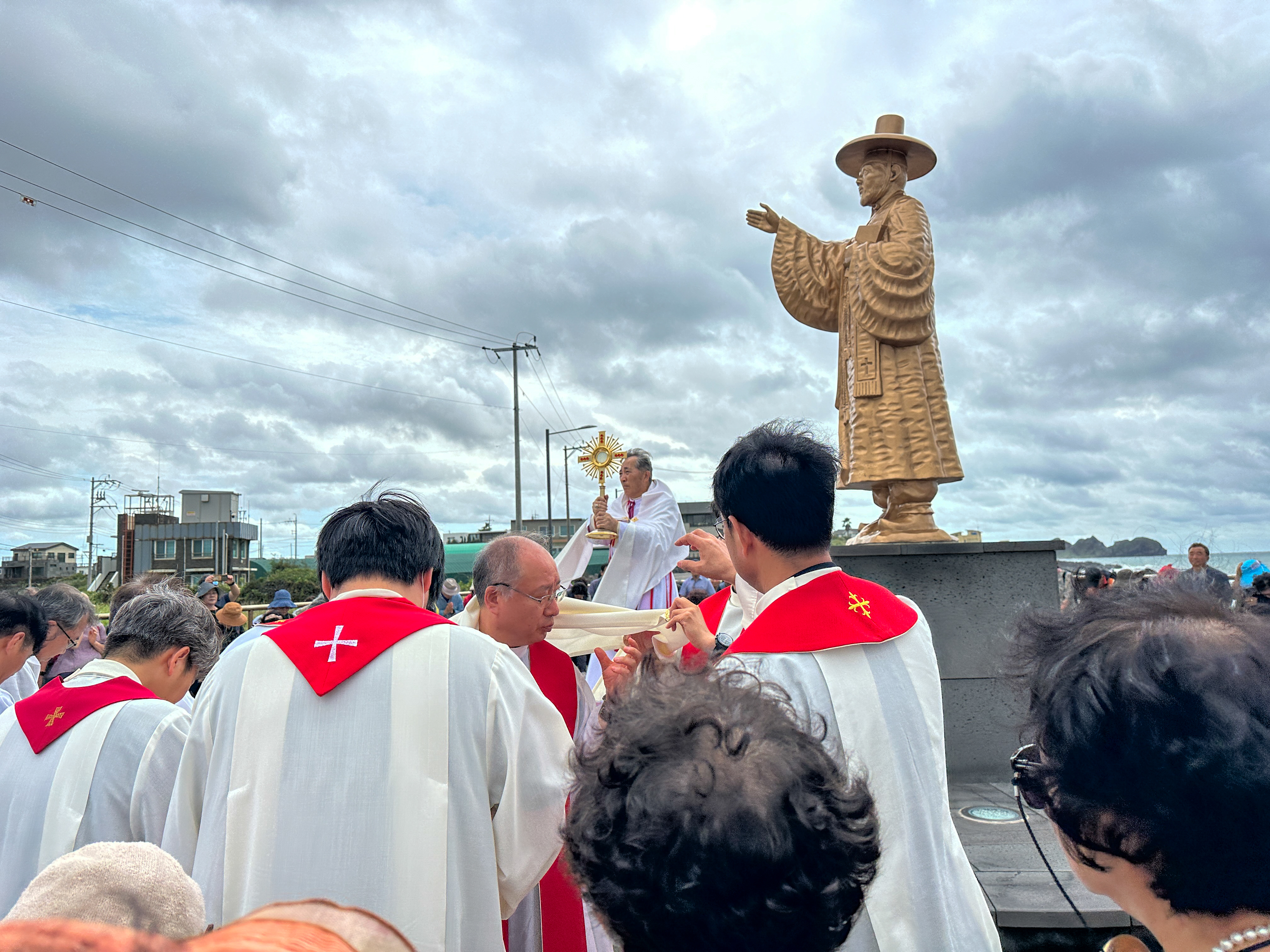 주교님과 함께 한 '성체거동'은 김대건신부님 상까지 였는데 왕복 2km가 넘었다.