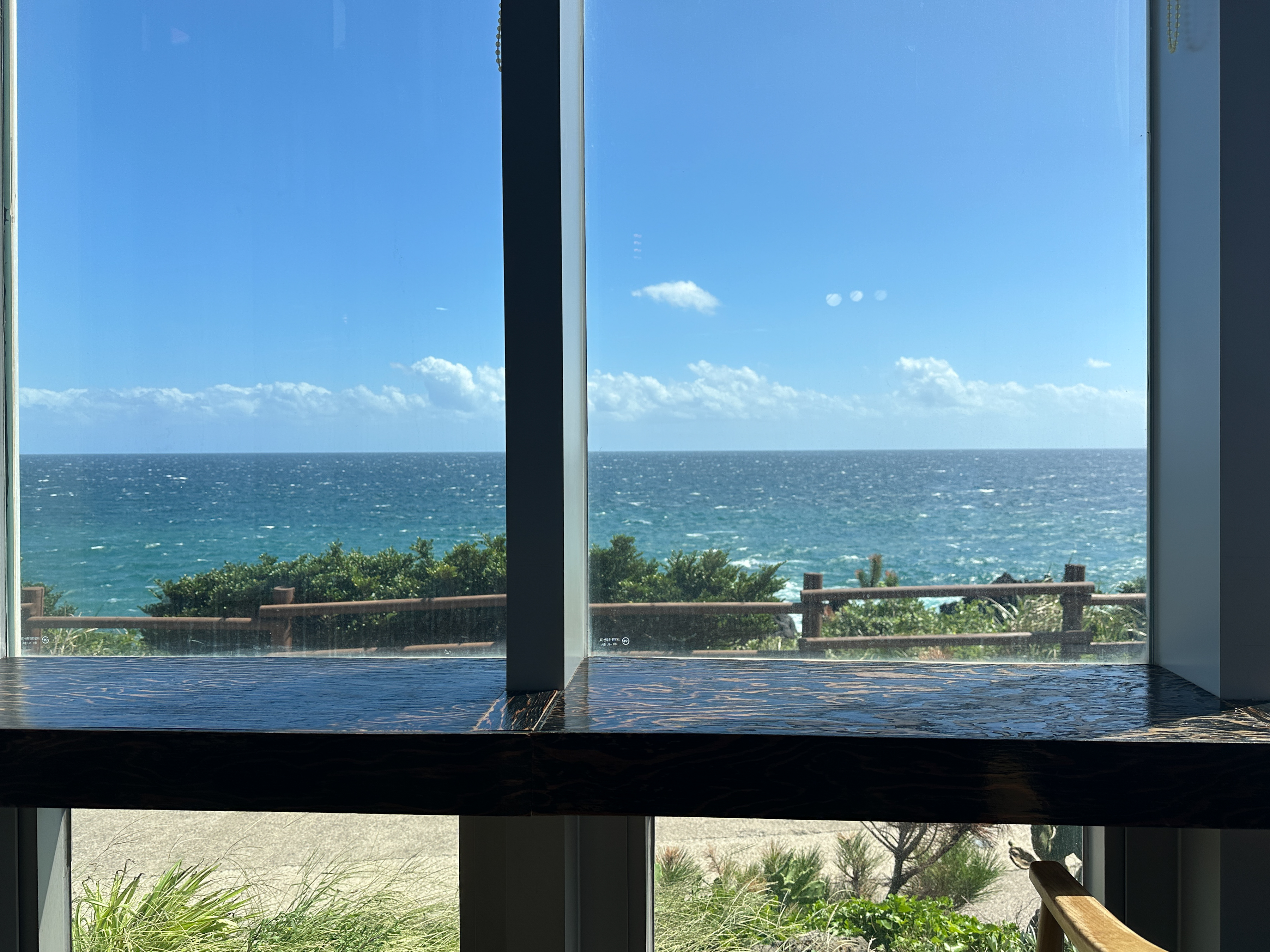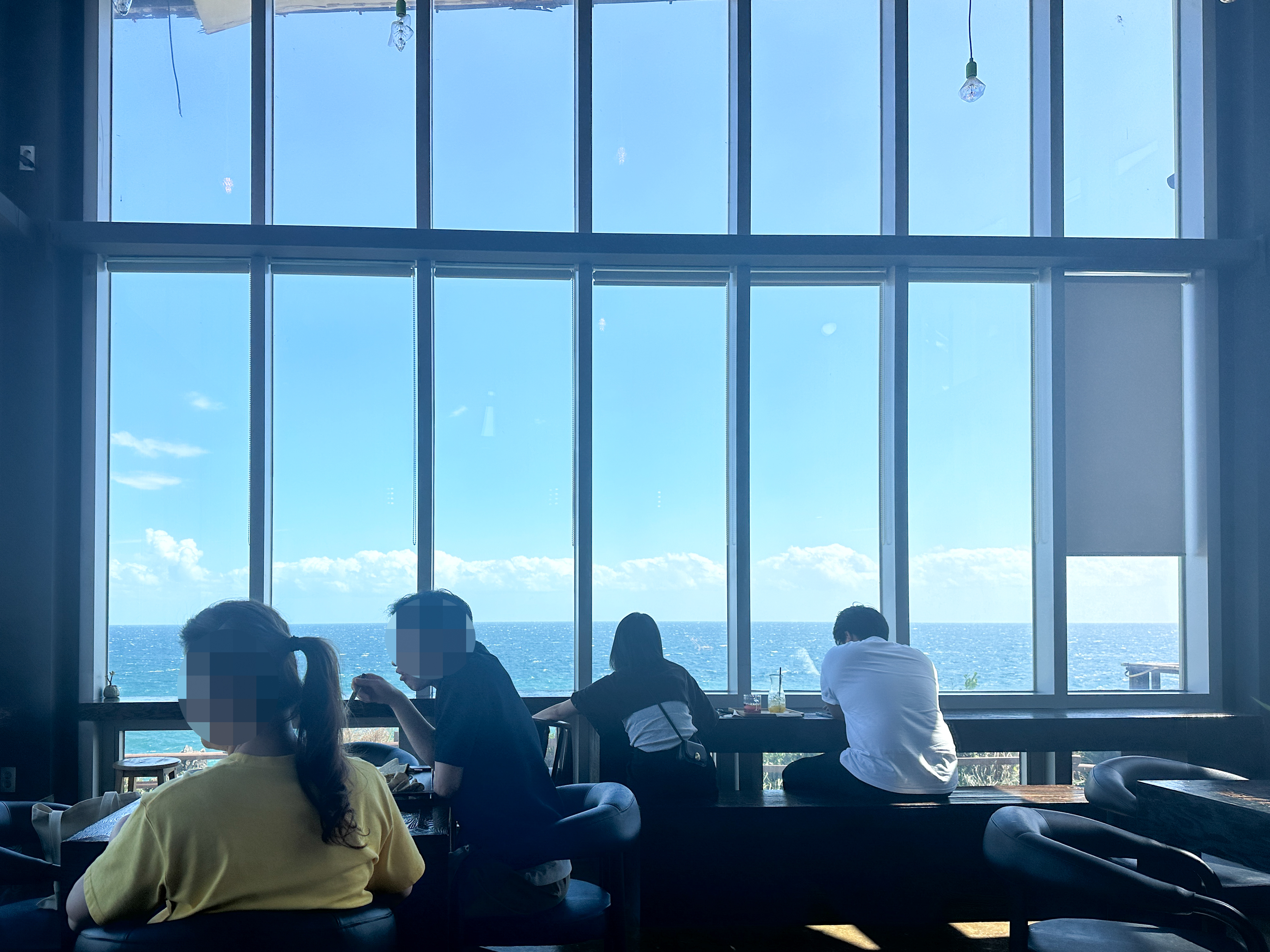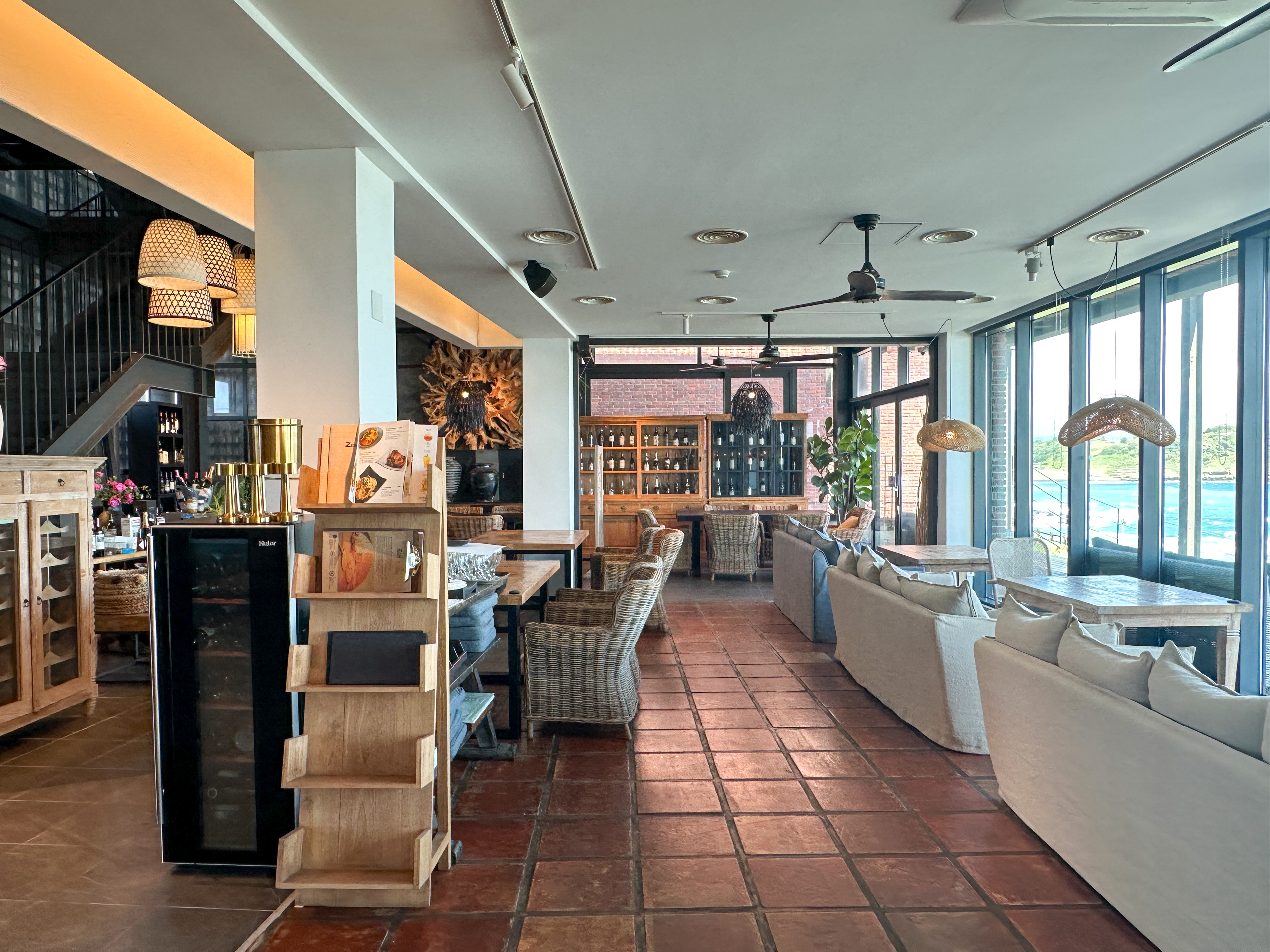 식사후 1층으로 내려가 바다로 향한 테라스로 나갔다.