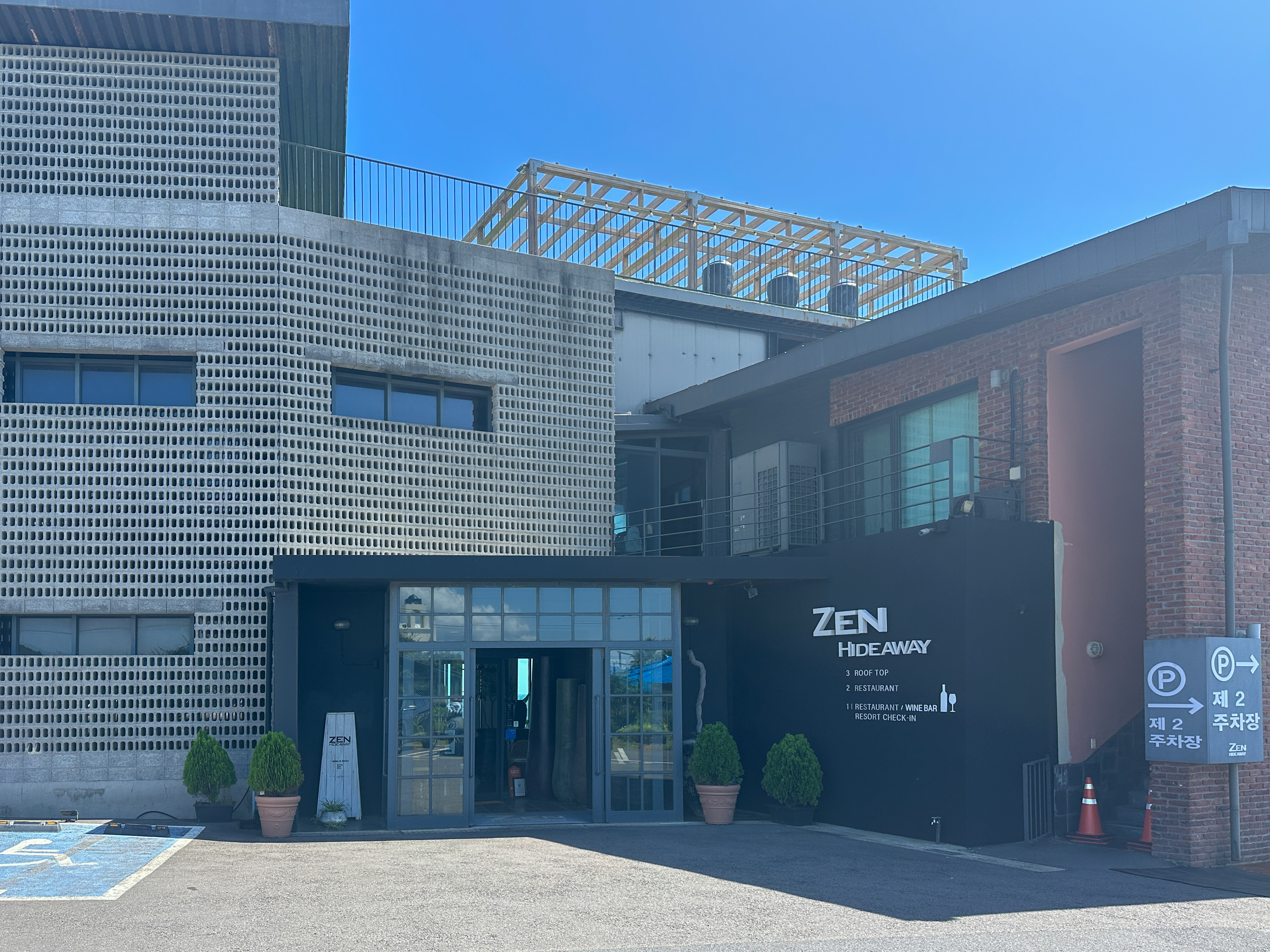 '젠하이드어웨이' 입구 -1층은 레스토랑&와인바와 함께 리조트 체크인 장소이기도 하다-