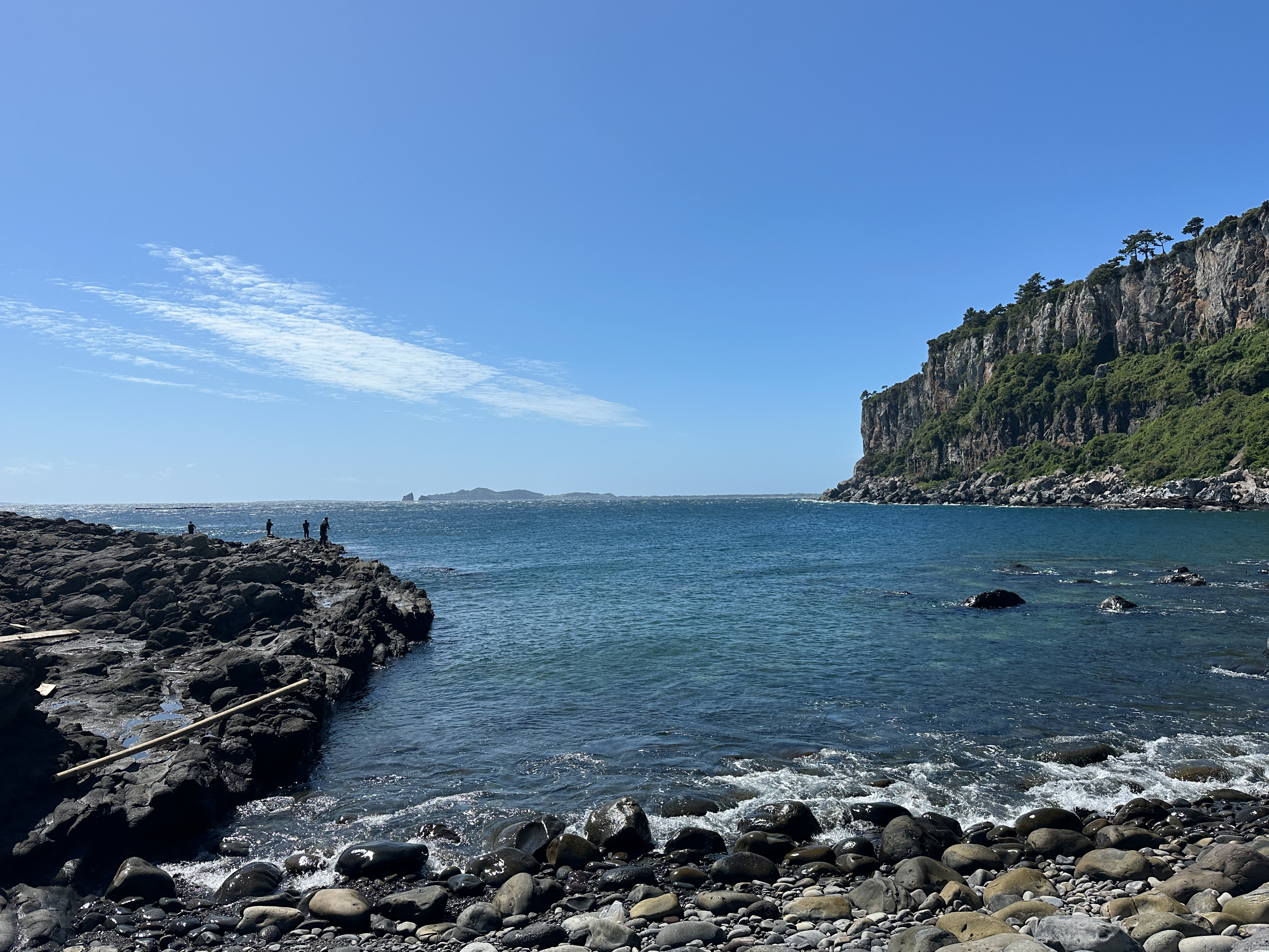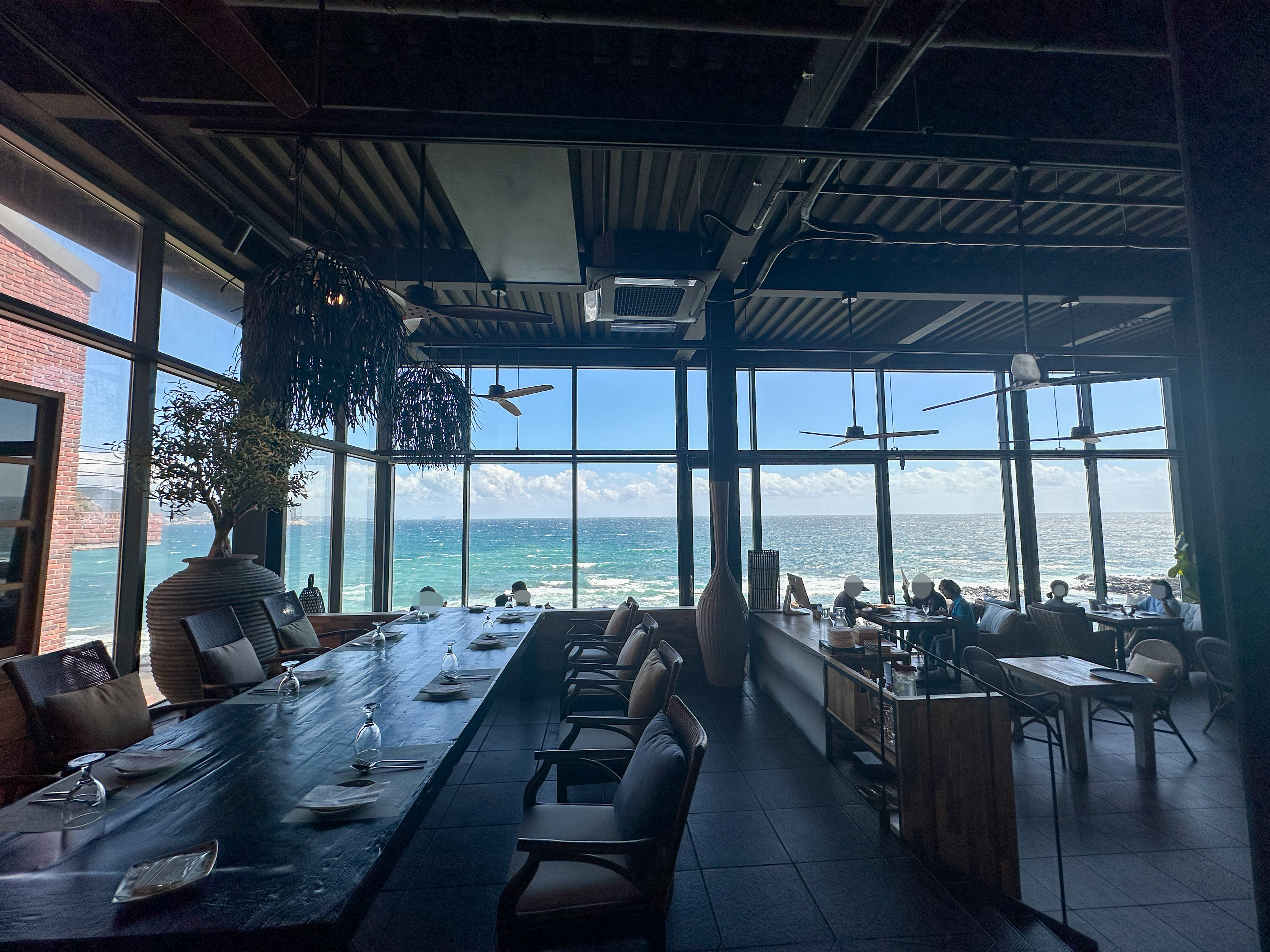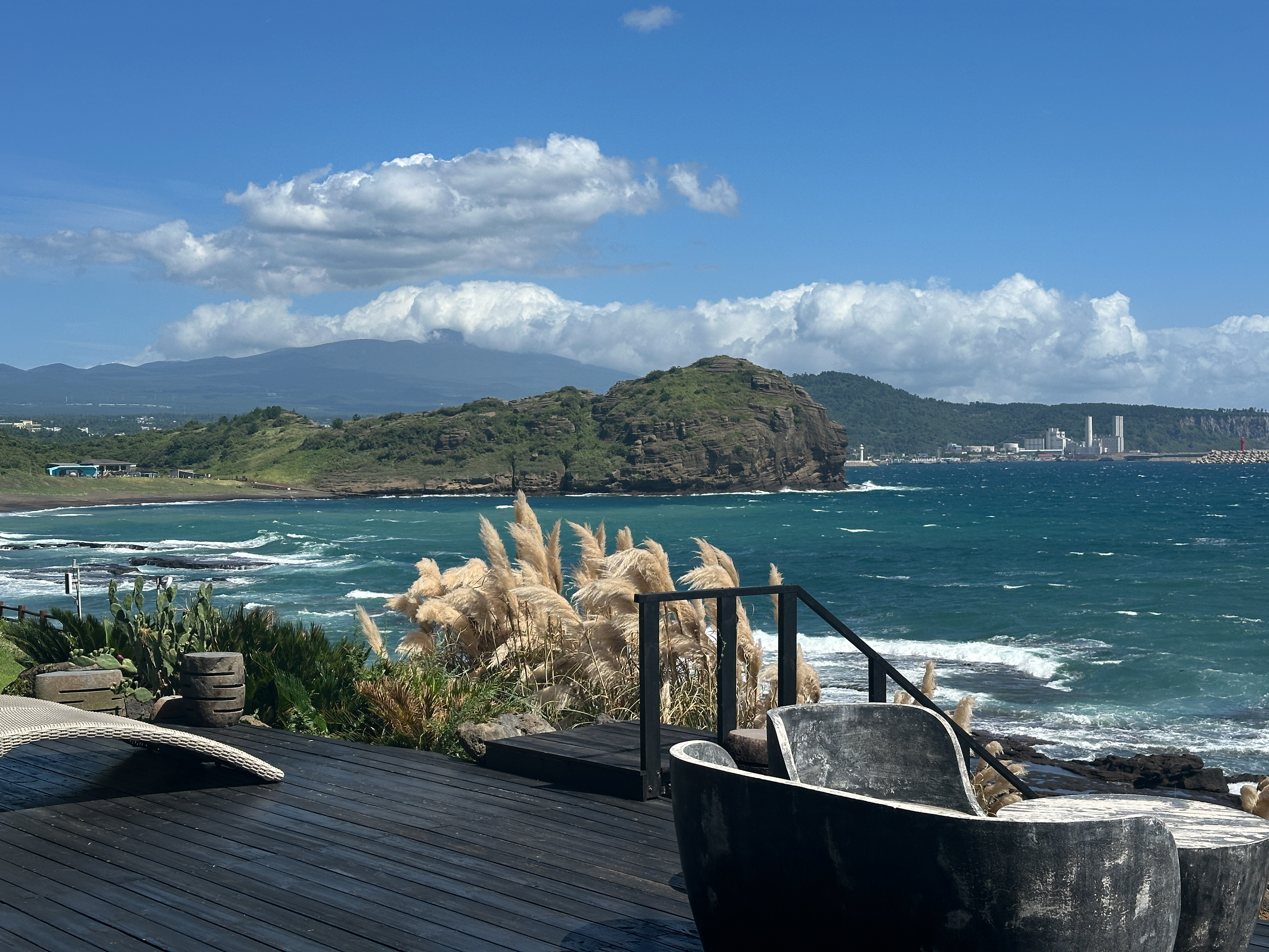 우리는 룸처럼 독립된 자리를 안내 받았다. 식탁에선 용머리와 박수기정, 형제섬도 잘 보인다.