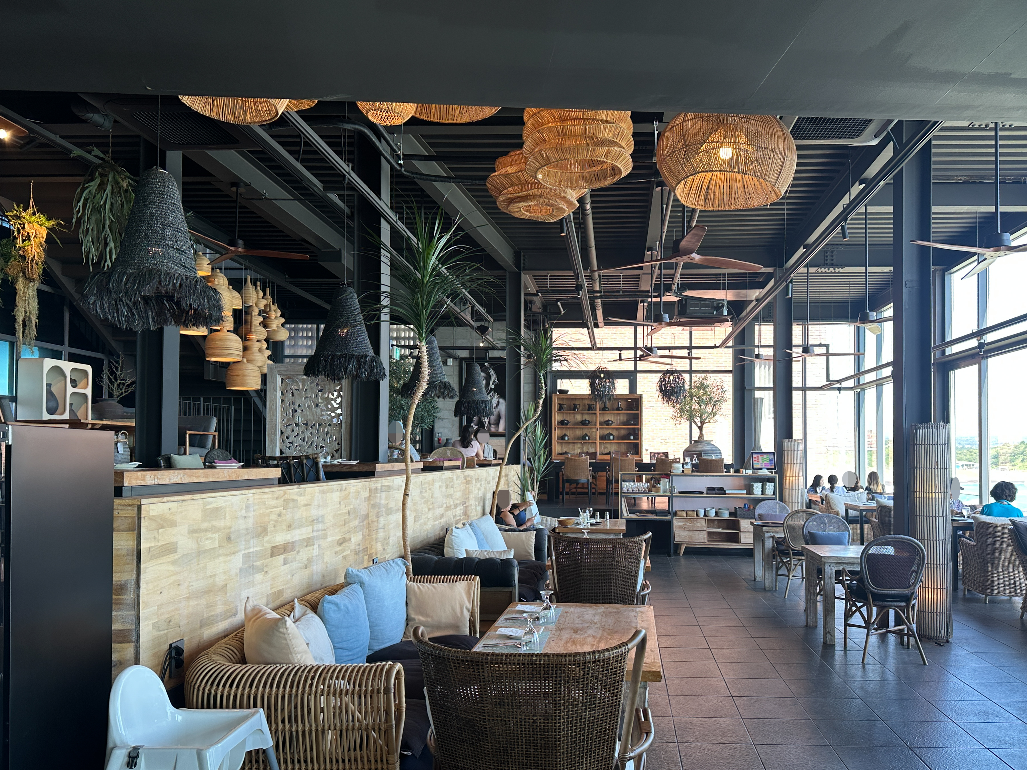 멋진 뷰를 자랑하는 hot한 레스토랑인데 미리 예약을 해서 2층 창가 독립된 공간에 앉았다.