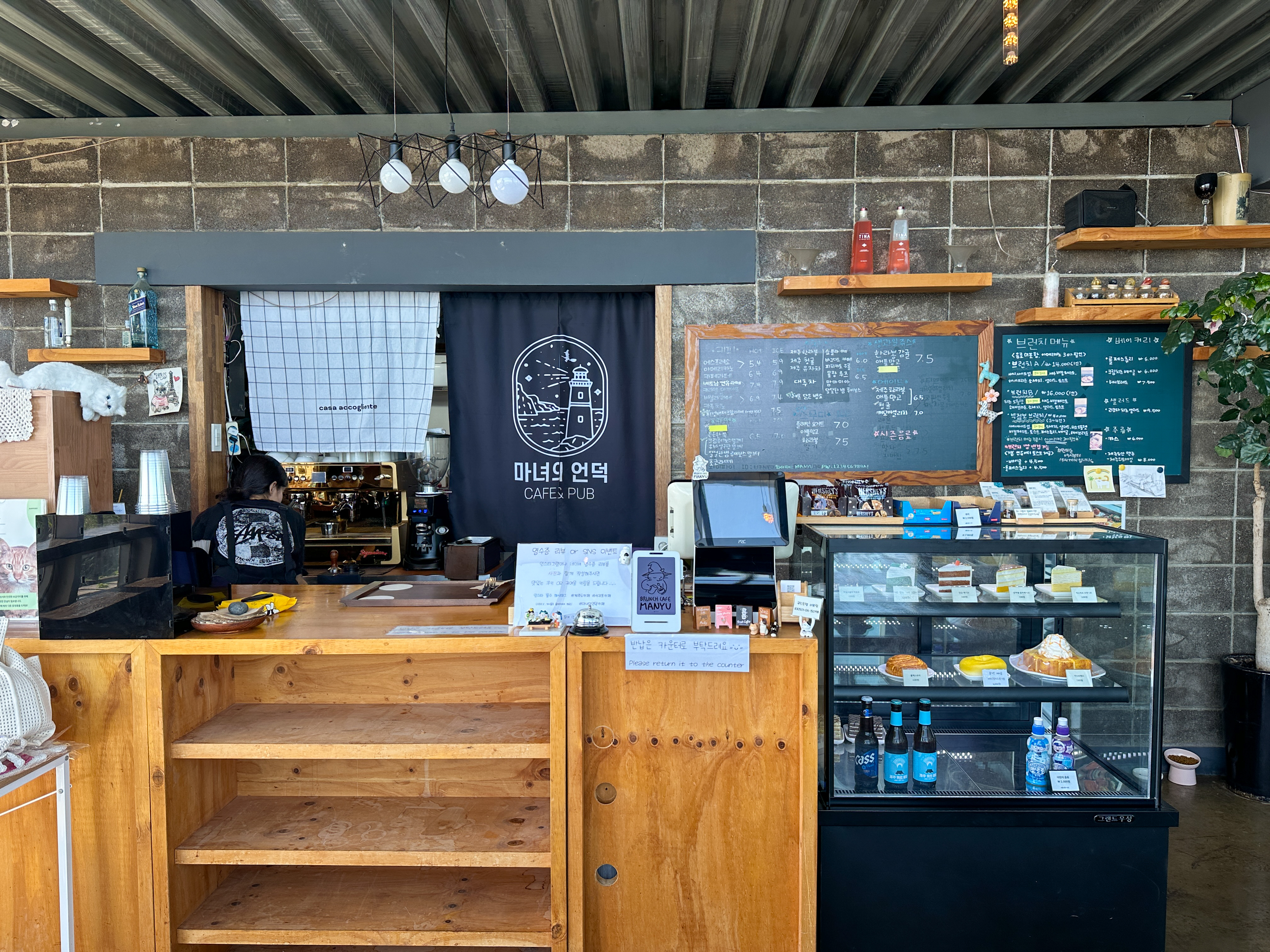 카페는 최근 드라마 '백번의 추억'에서 열연하는 배우 '김다미'의 신인시절 화제를 일으켰던 영화 '마녀1'의 라스트신 촬영지 ‘마녀의 언덕'을 찾았다. 올레8코스가 지나는 길목에 있다.