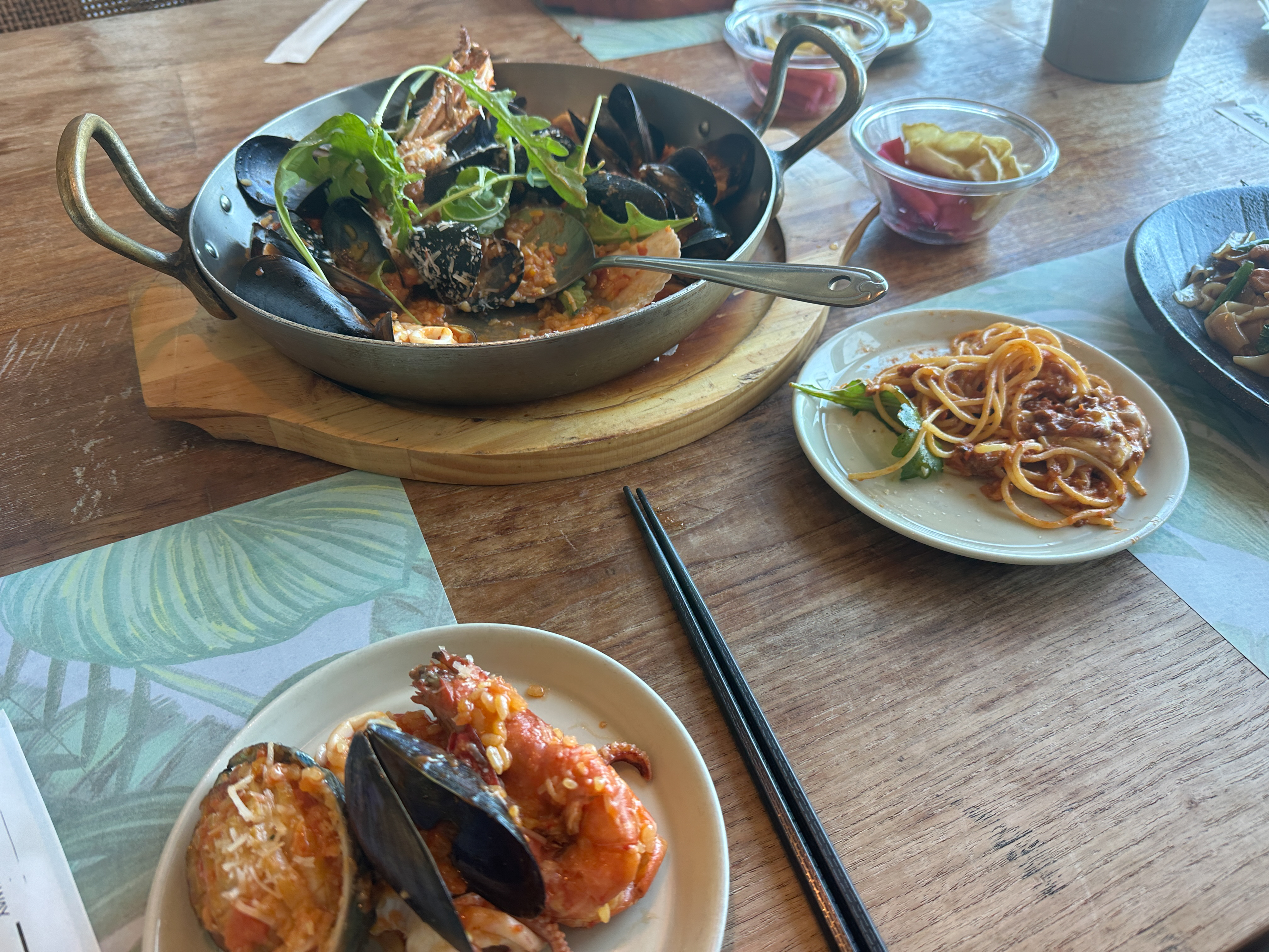 음식은 해산물빠에야, 허브소고기 볶음국수 ,라구 파스타를 주문했다.
